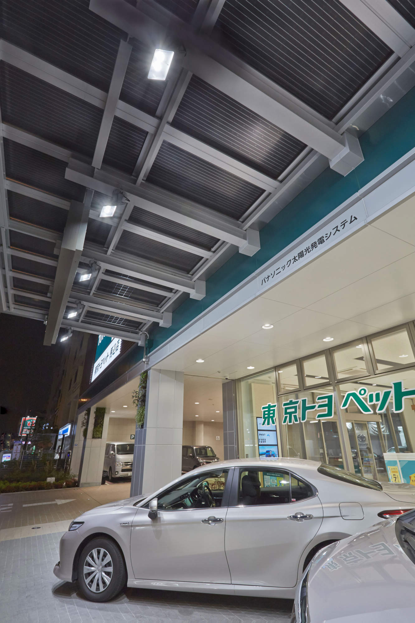 今年で40年目を迎える馬込店は、省エネ対策としてLED化を実施しました。さらに、エネルギーの一括管理にも取り組まれており、災害・緊急時の拠点として活用できるよう、地域の安心を支えています。2階には保育所を併設し、新車ディーラーでは都内初となる新たな取り組みで地域貢献を推進されています。