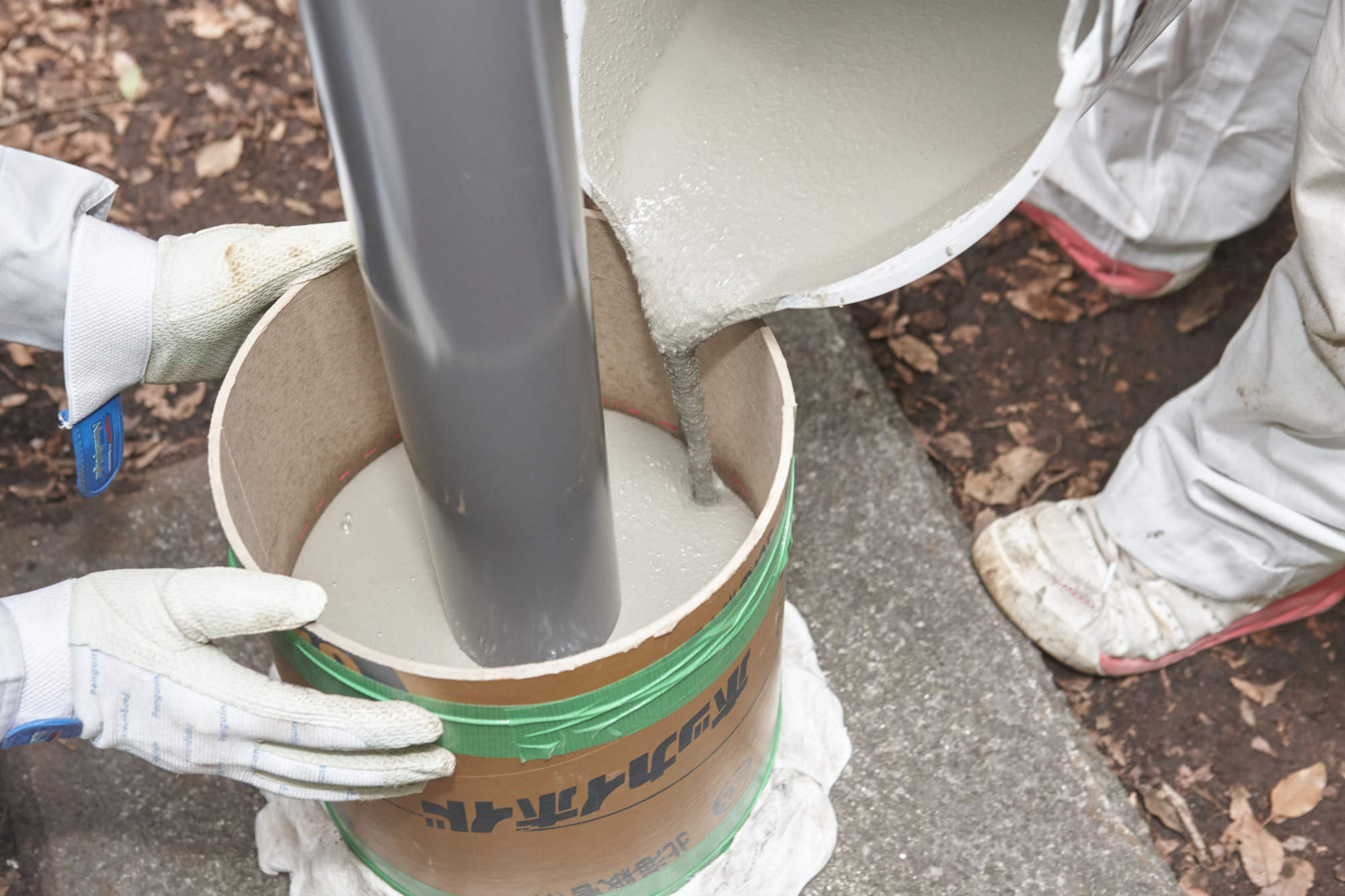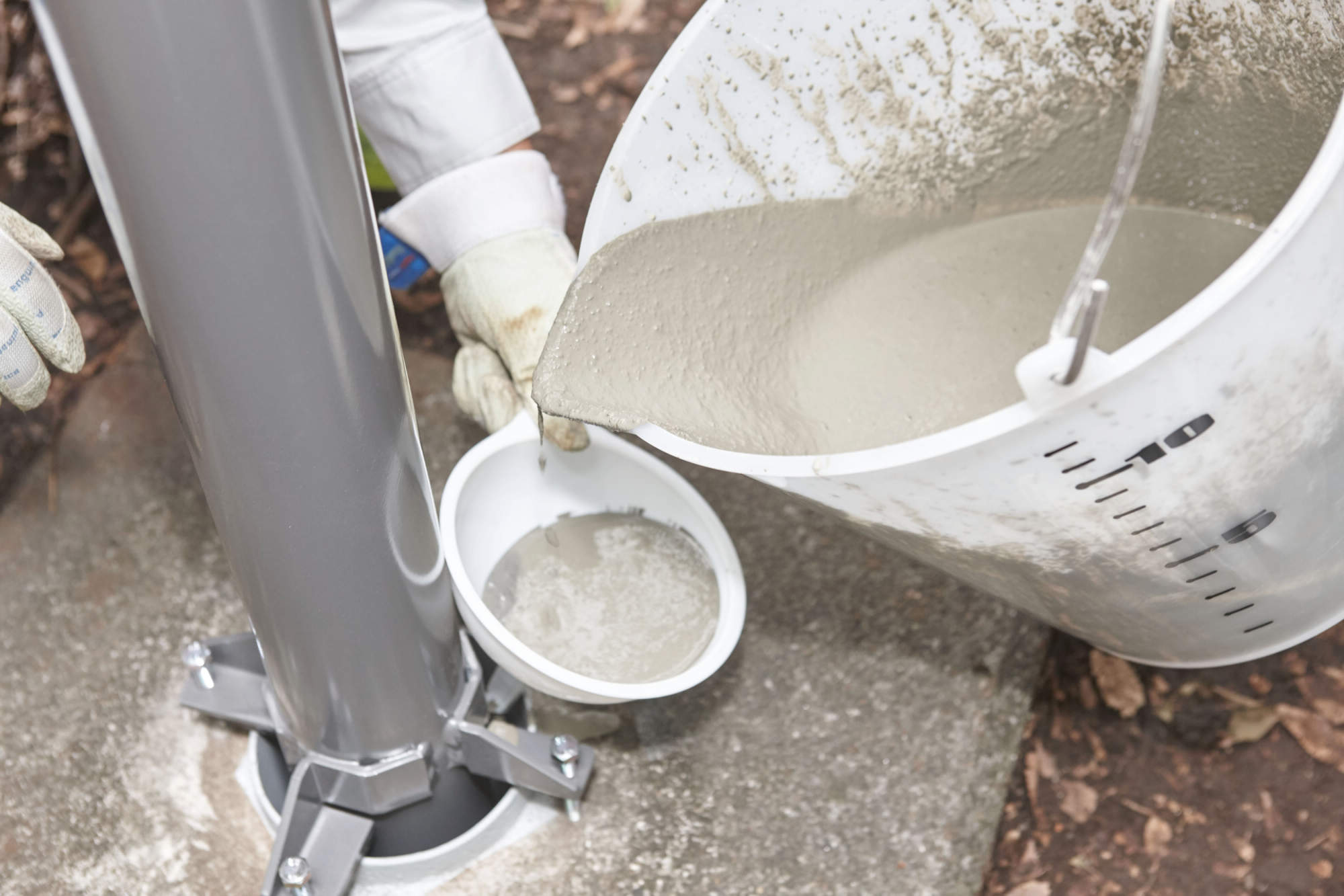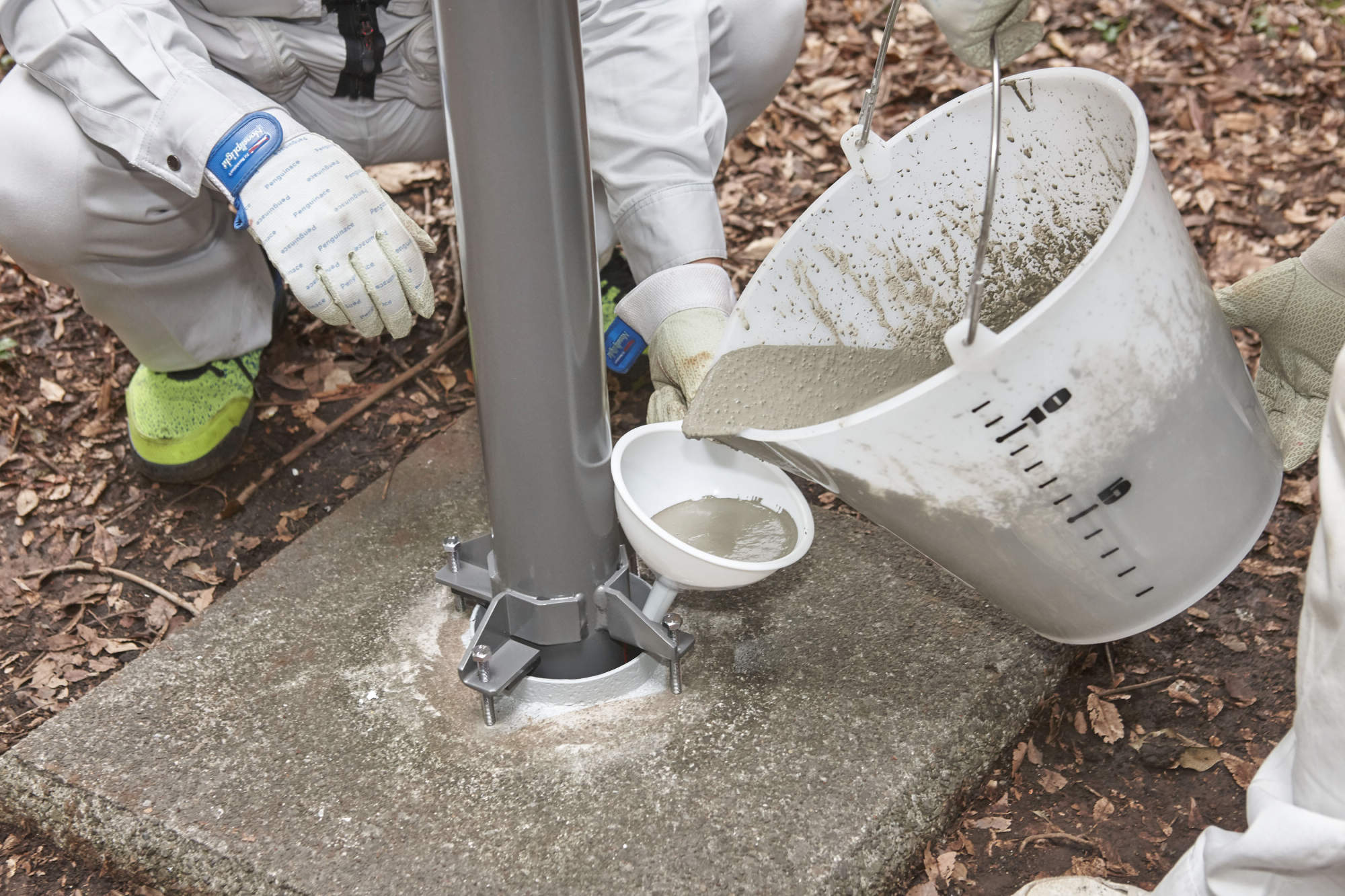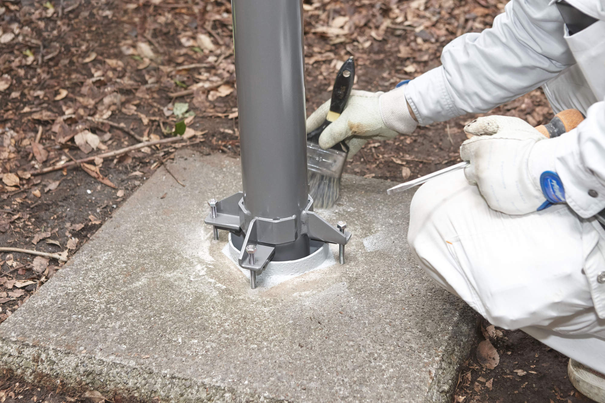「QQポール」なら既設の古いポールを根元で切って、新しいポールを差し込み、固めるだけです。
