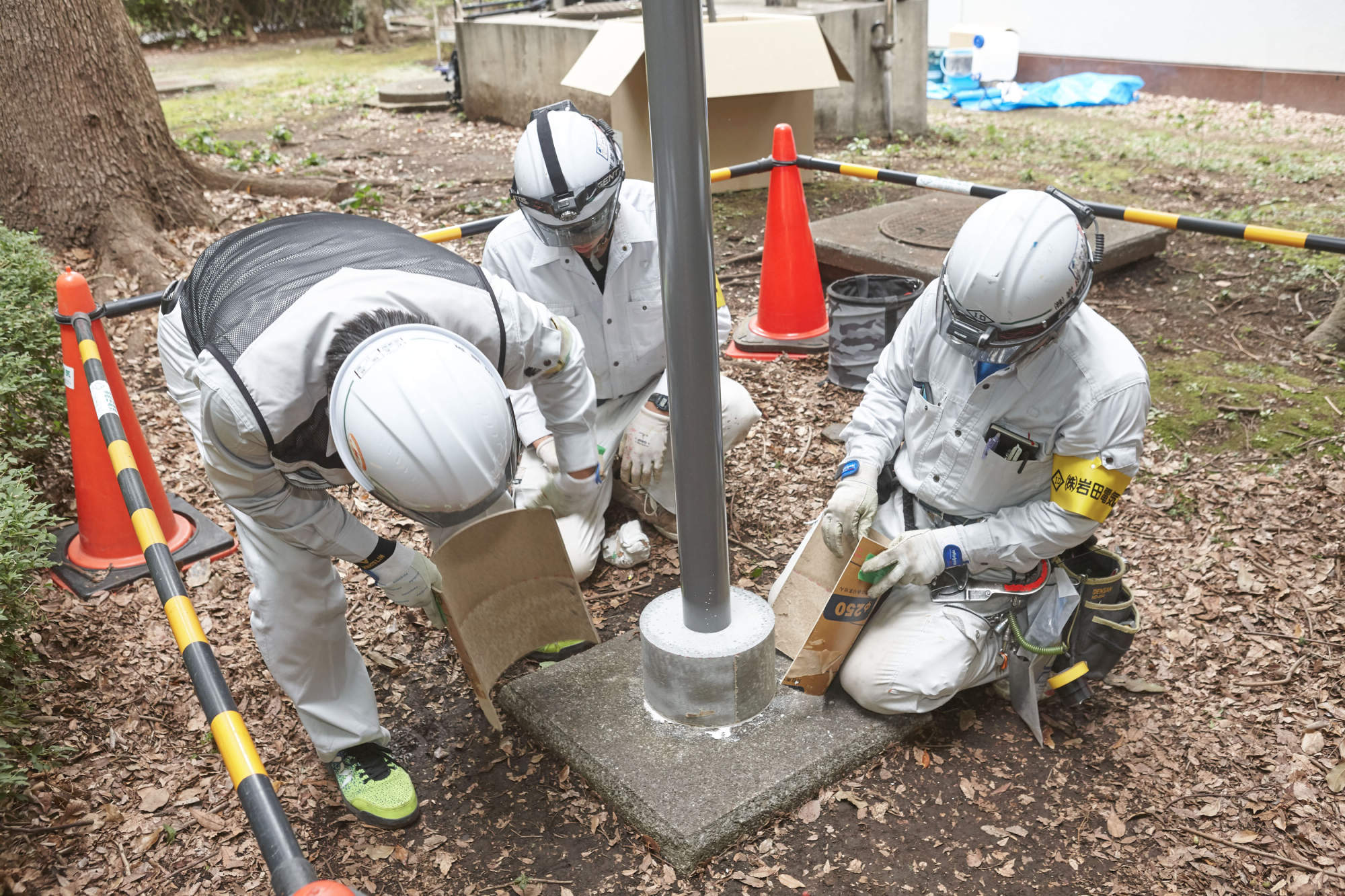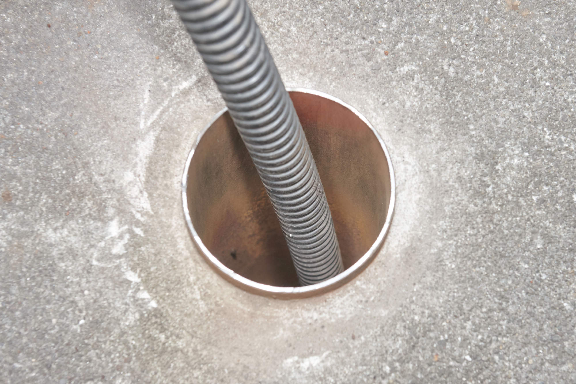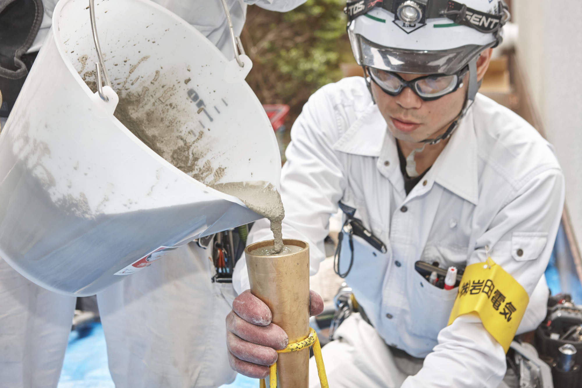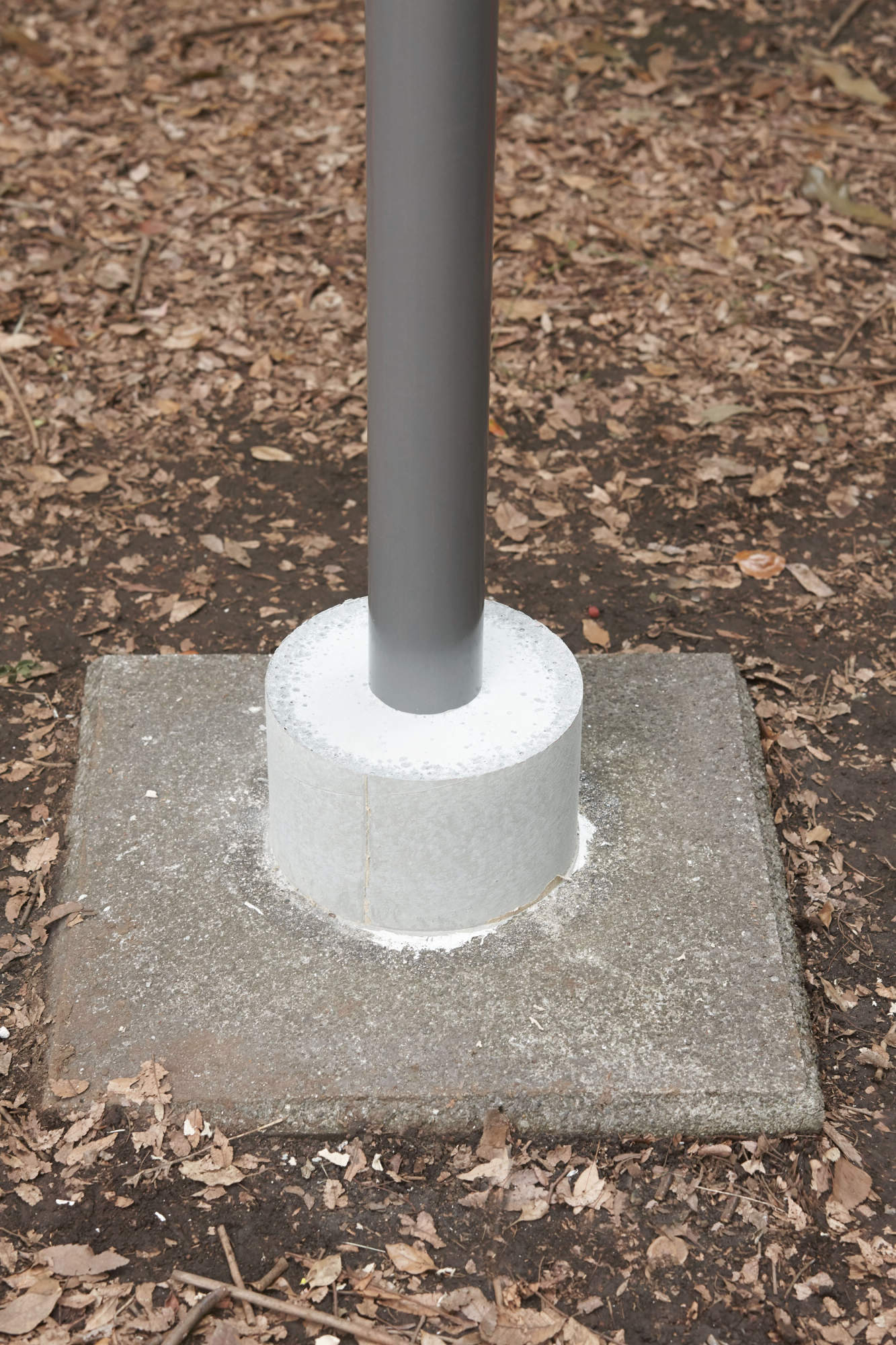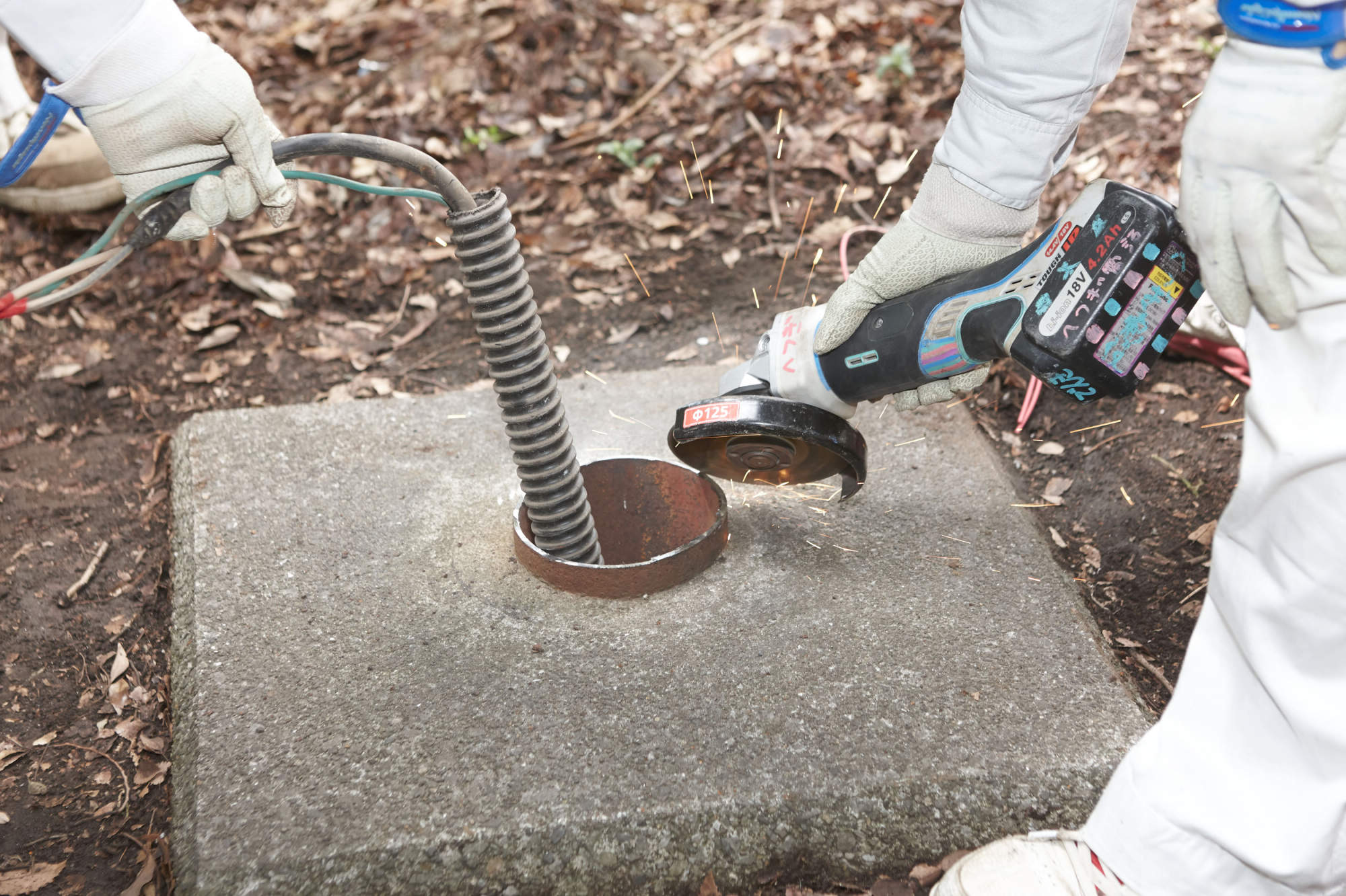 「QQポール」なら既設の古いポールを根元で切って、新しいポールを差し込み、固めるだけです。