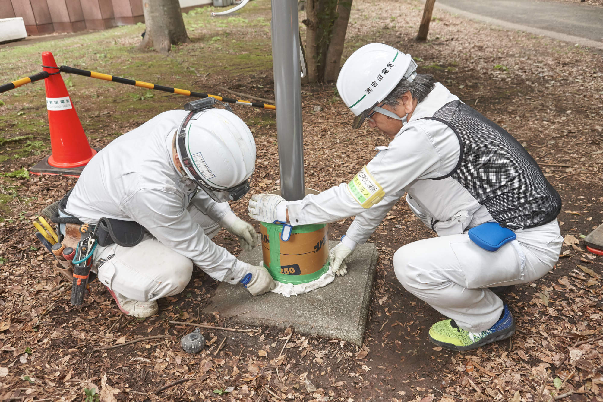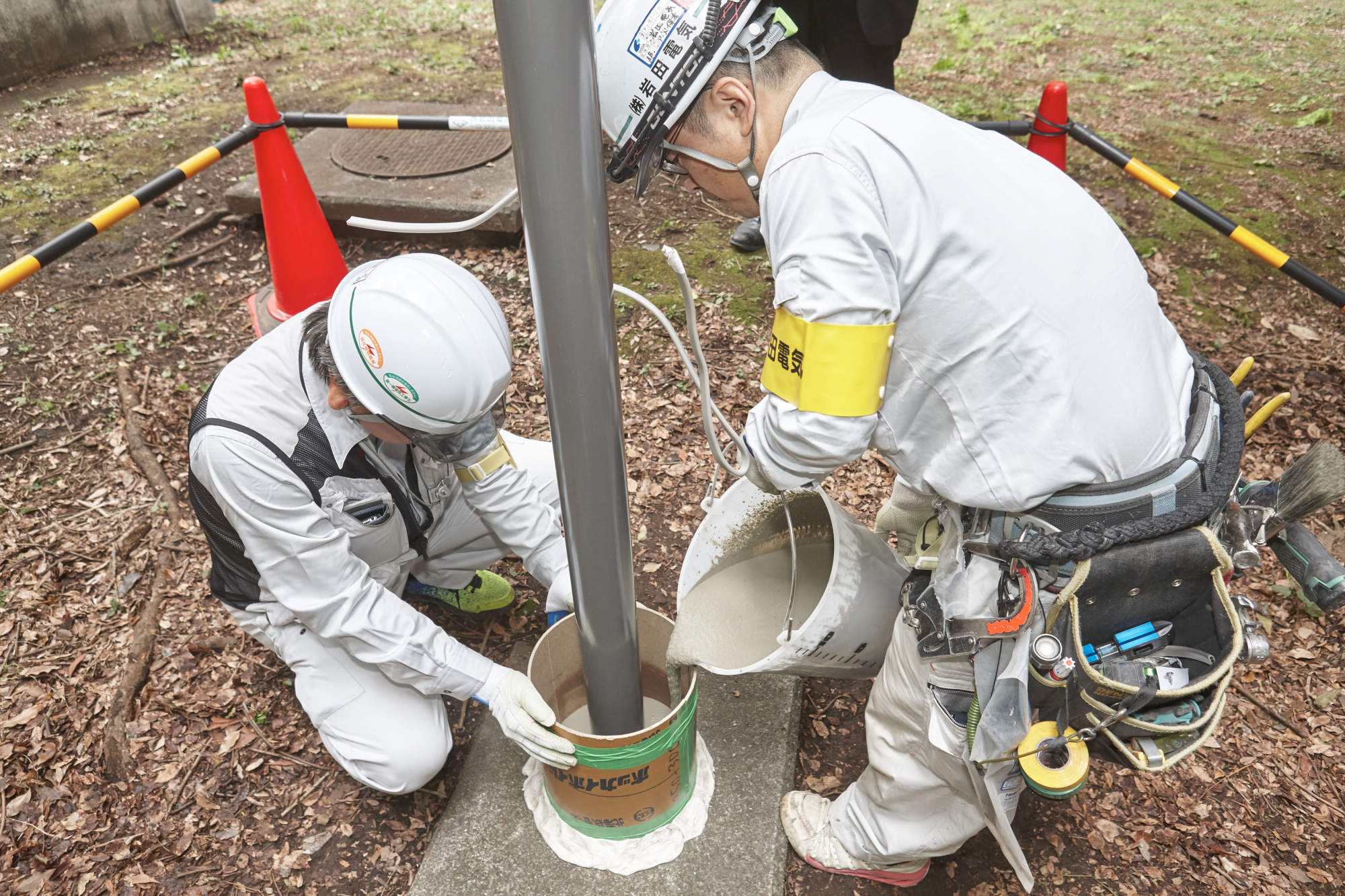 基礎工事なしの簡単施工!街路灯リニューアル専用ポールで短工期を実現
