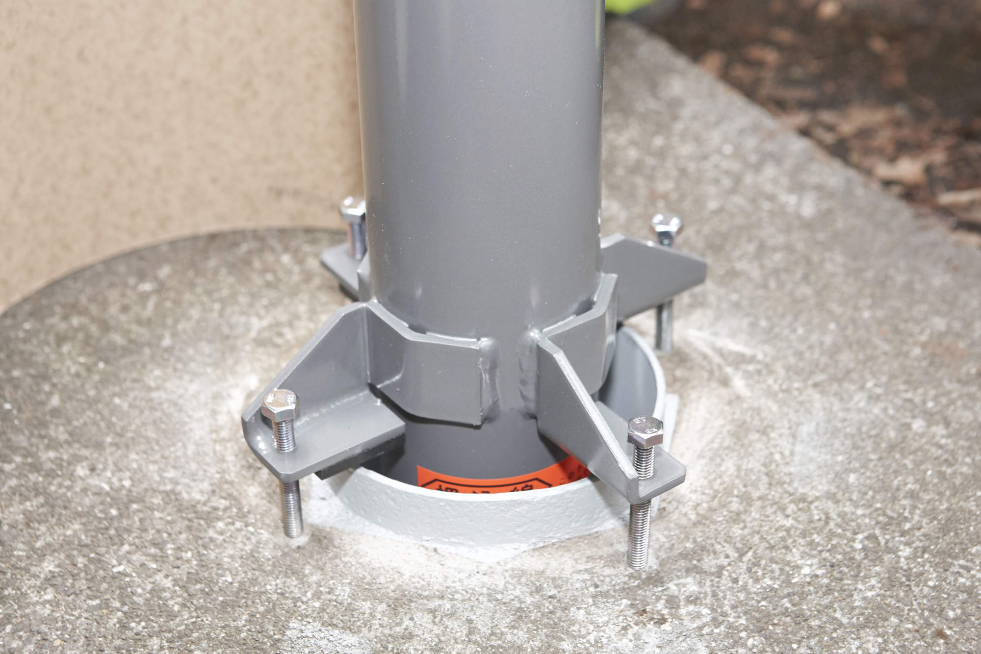 A2.コンクリート基礎を再利用できるか判断が難しい。通常、ポールをカットして後打ちアンカーを打って、ベース式ポールを建てるが、工事も3~4日ほど掛かってしまう。
