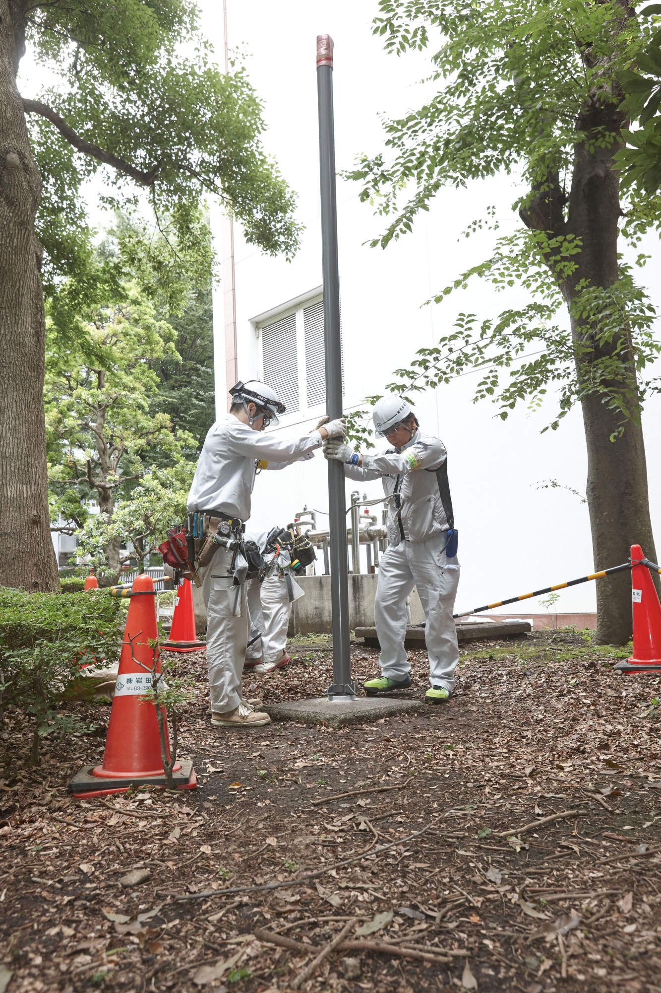 短工期実現のために、街路灯リニューアル用ポール「QQポール」をご採用。