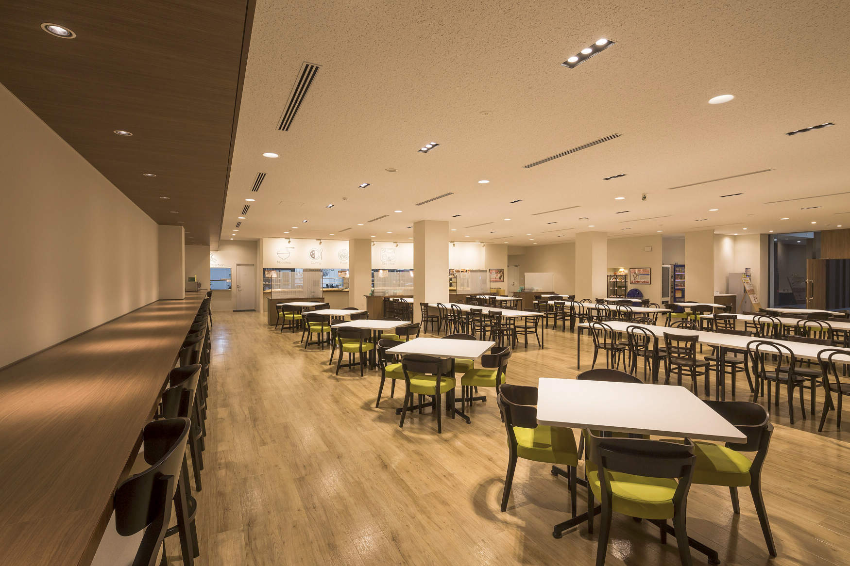 外観はシンプルなデザインとし、フレキシビリティ―を求められるこれからの事務室空間としてスクエア照明器具を採用し、大規模オフィスビルではなくてもシステム天井を使わずに有効な快適性や省エネ性を具現化できる施設となりました。