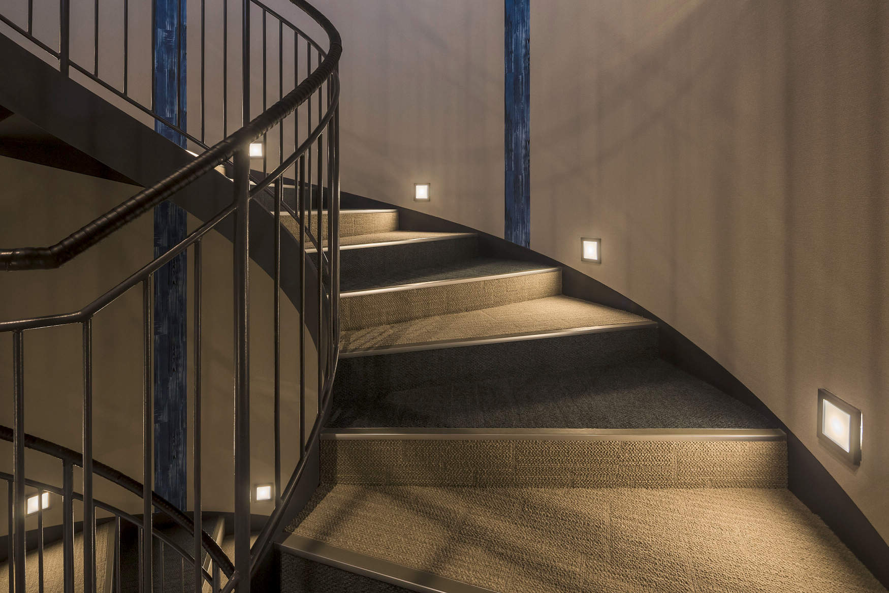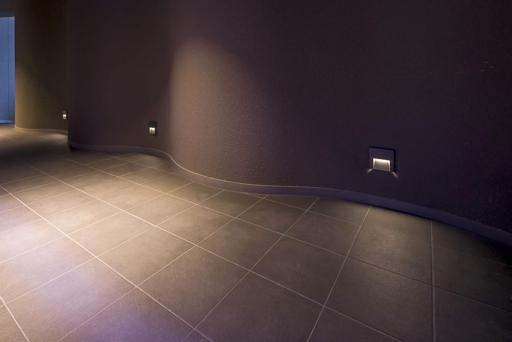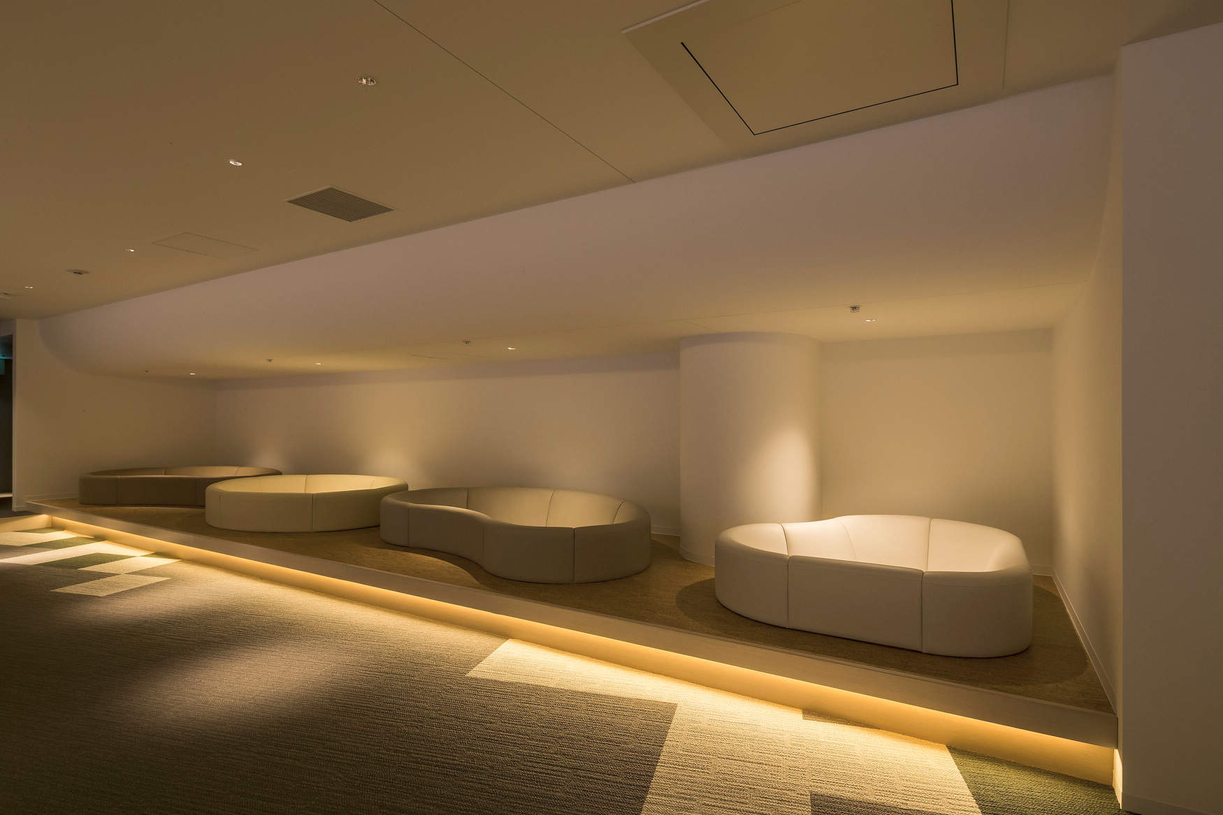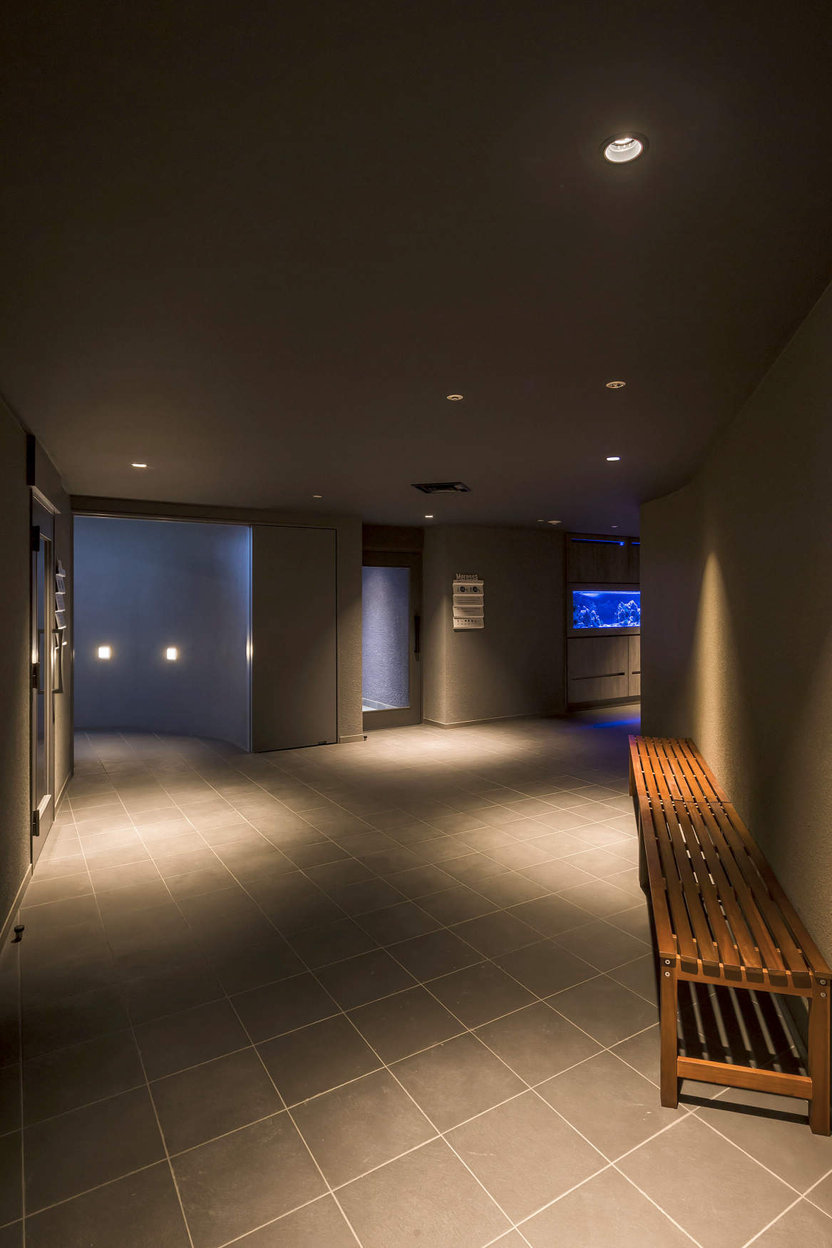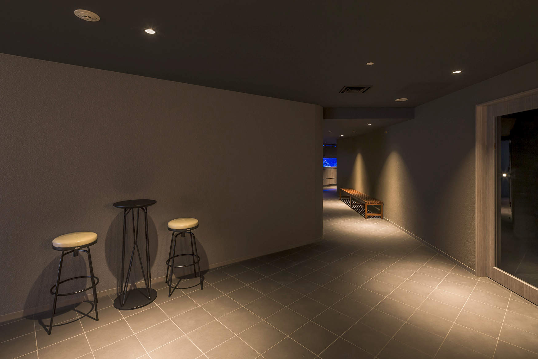 ベースの照明はスマートアーキのグレアレスダウンライトで構成し、メリハリを効かせた構成としています。