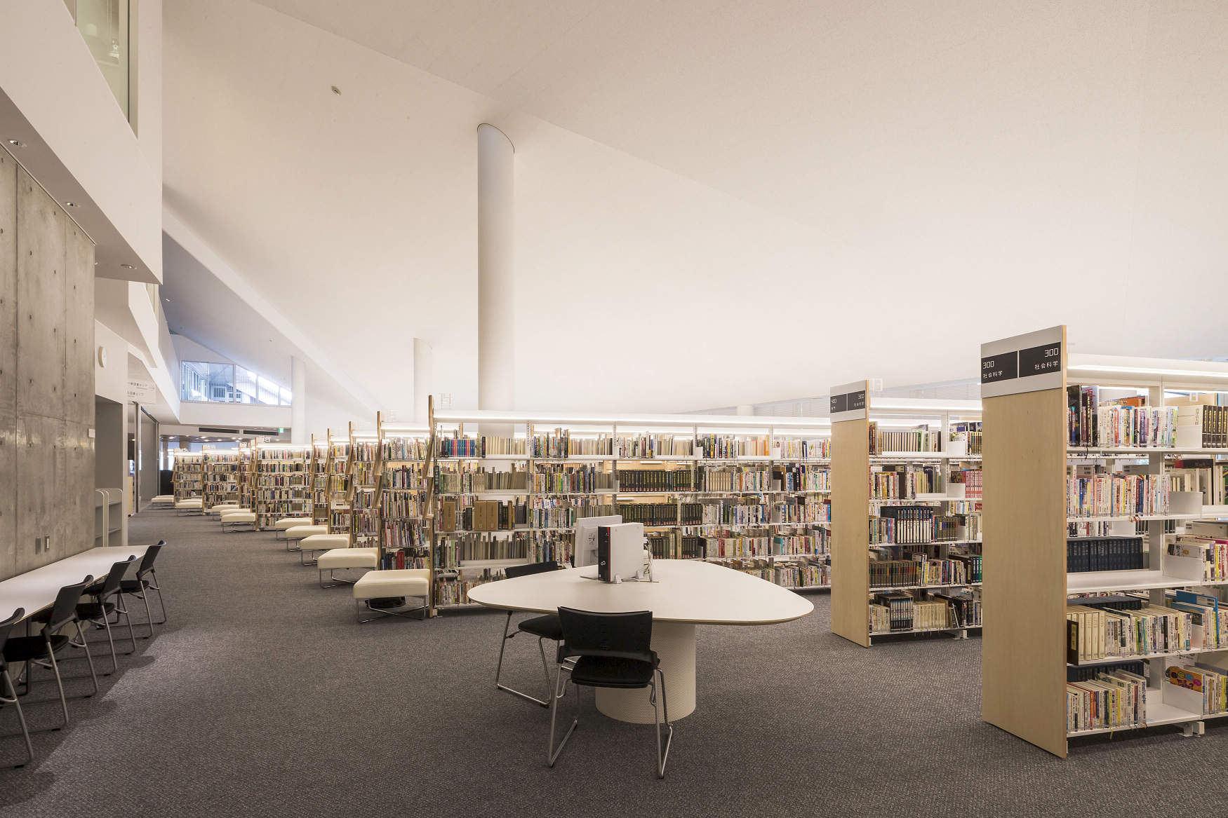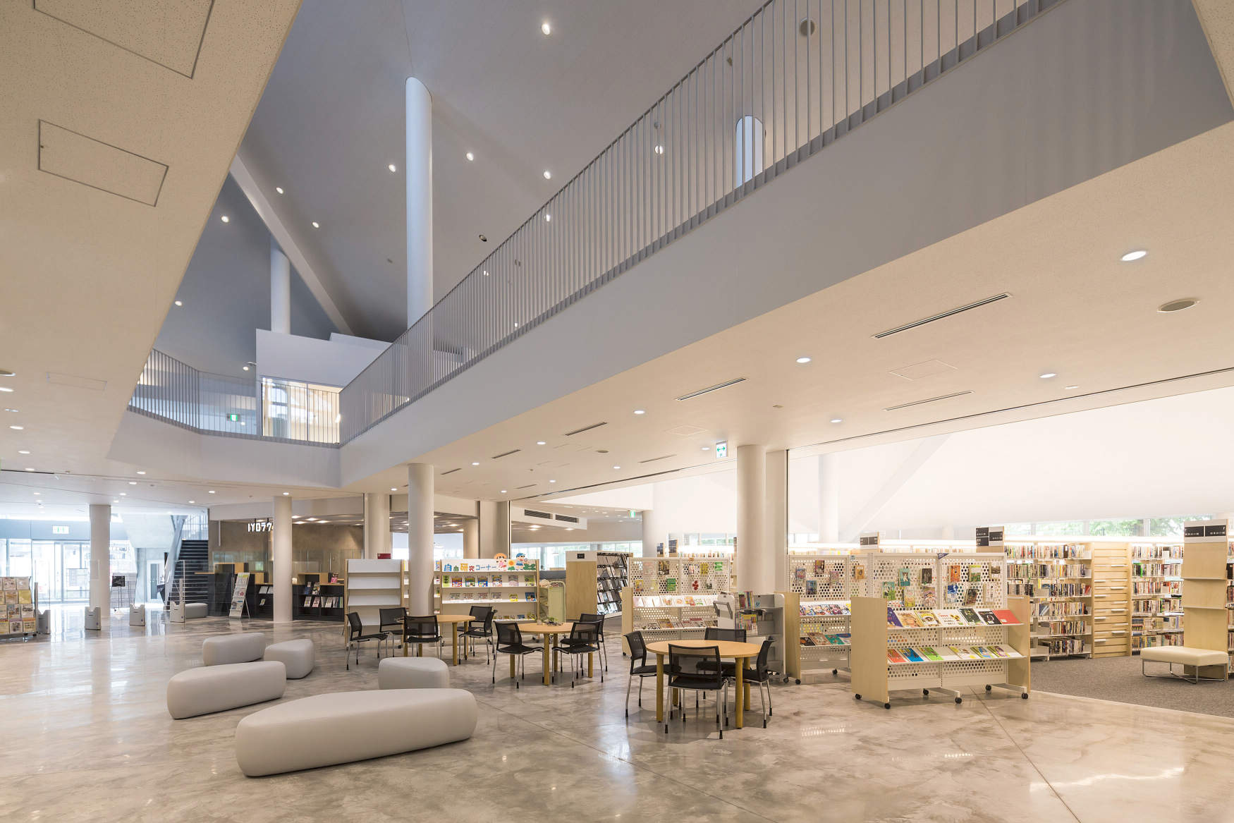 - IYO夢みらい館(文化交流センター)は文化ホール、地域交流館、図書館が縁側モールと呼ばれる空間でつながった複合施設です。 延床5580㎡