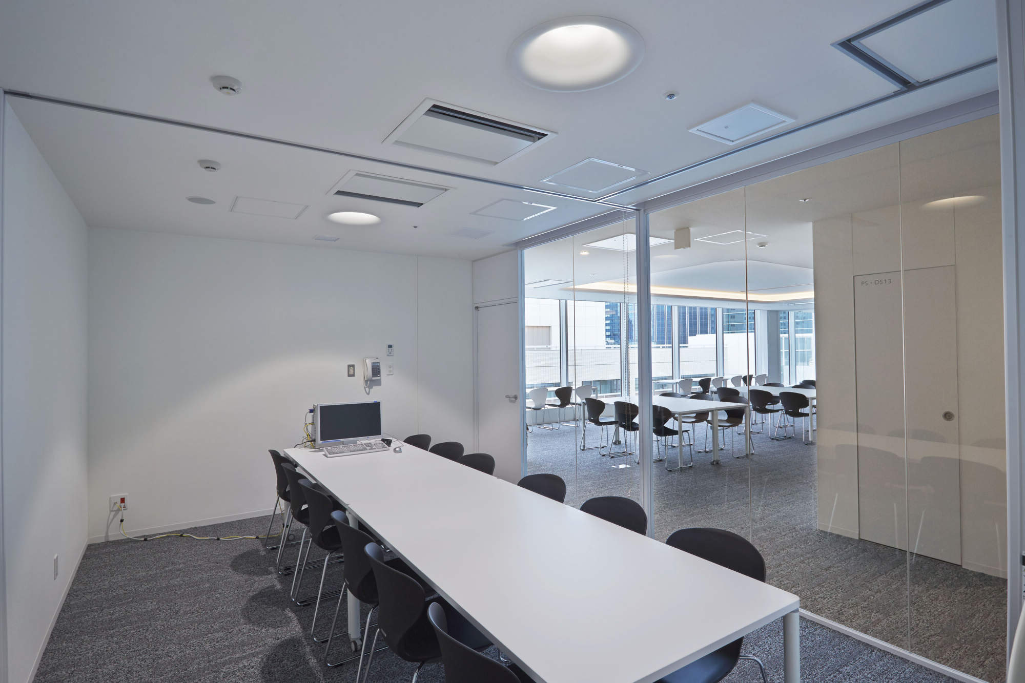 窓と平行にソフトライトのラインタイプが配置されています。少し離れた所から見ると器具の存在感が殆ど無くなりますが、照度はシッカリ取れているスッキリとした空間イメージになります。