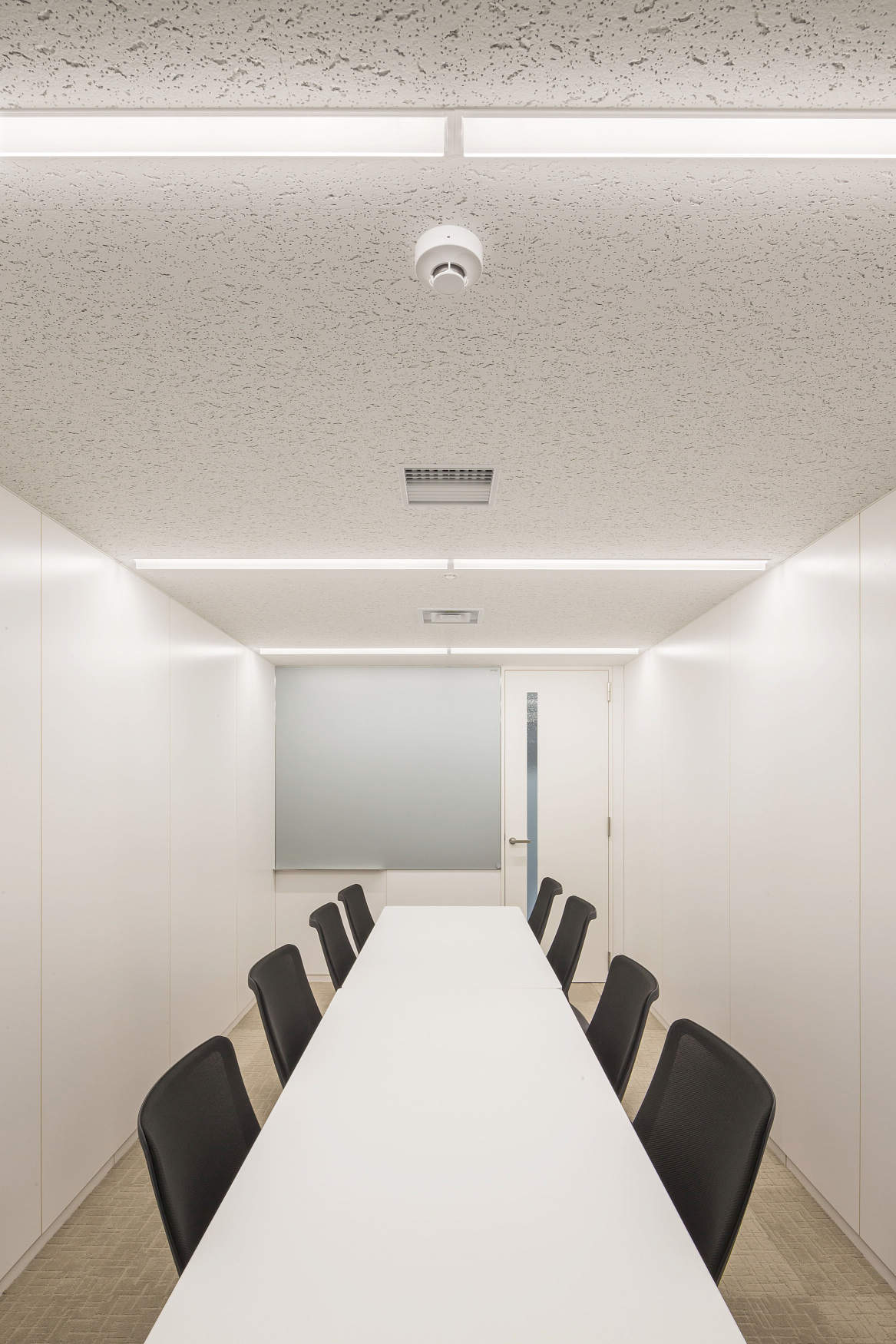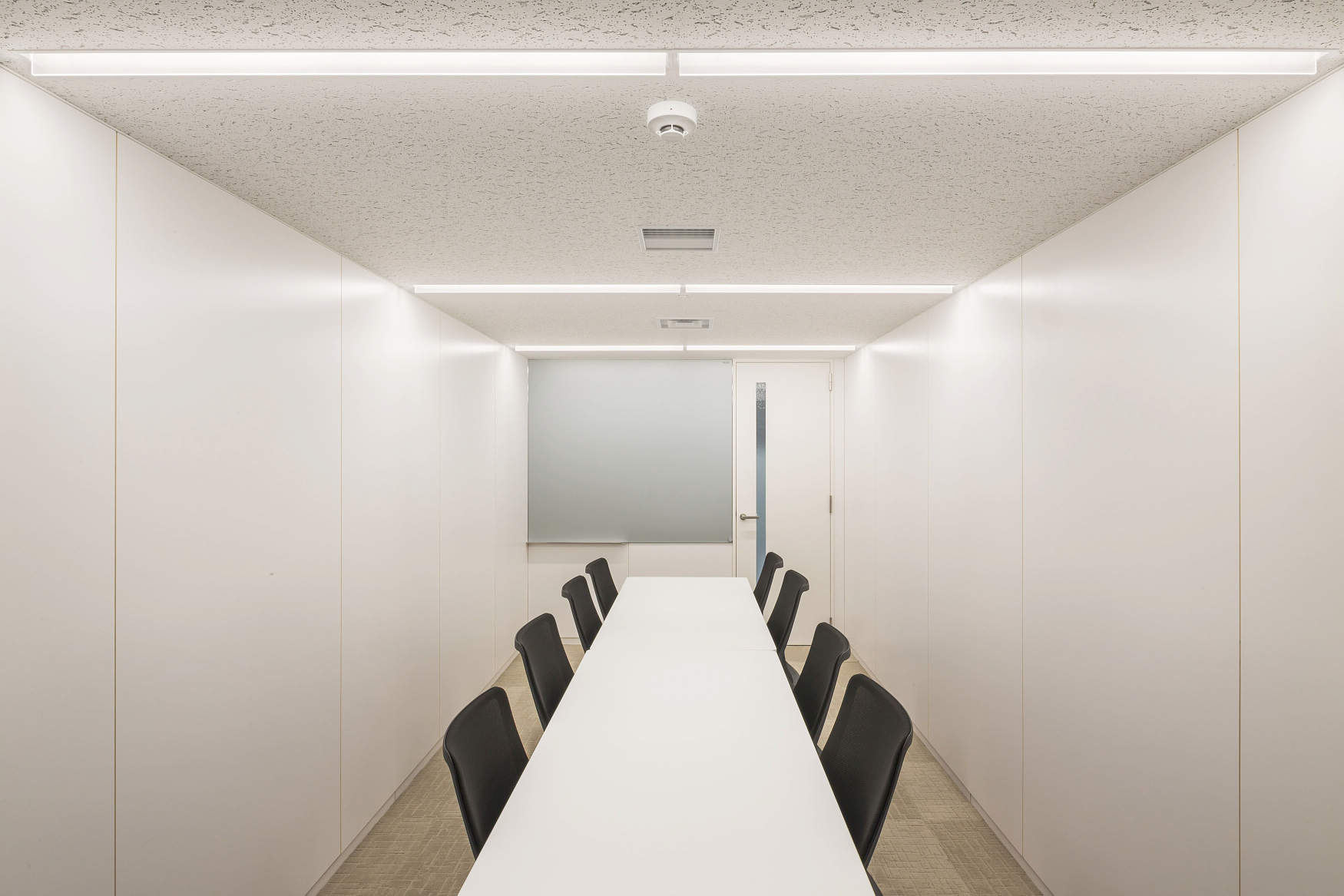 事務所内の打合せコーナー、会議室、応接室に導光パネル式ベースライト(FYY26040)を採用しております。