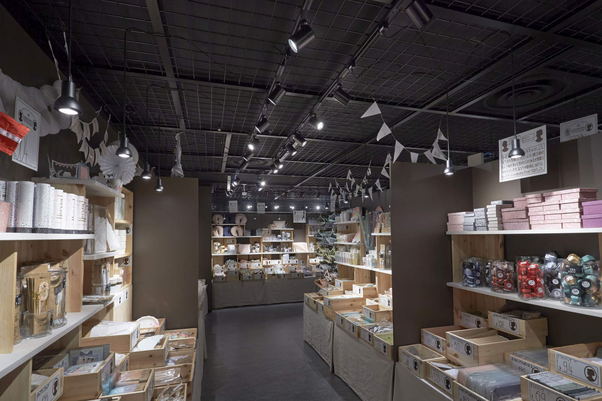 輸入雑貨店にてスポットライトでベース照明と演出照明をビームフリーをそれぞれ調整しており、1品番で店舗全体が構成された店舗です。