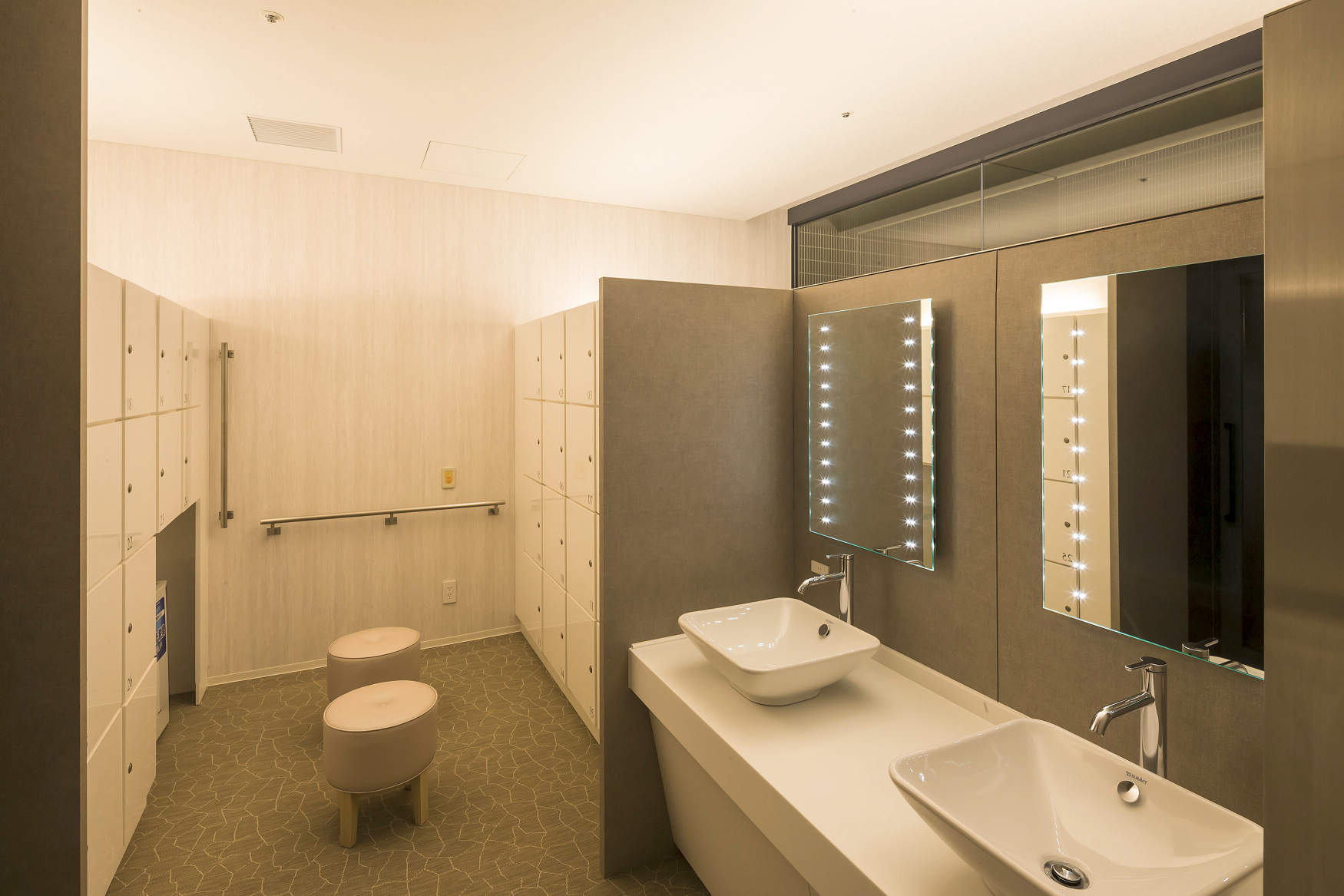 最上階(13階)の大浴場にはラウンジや女性専用テラス付きパウダールームがあります。