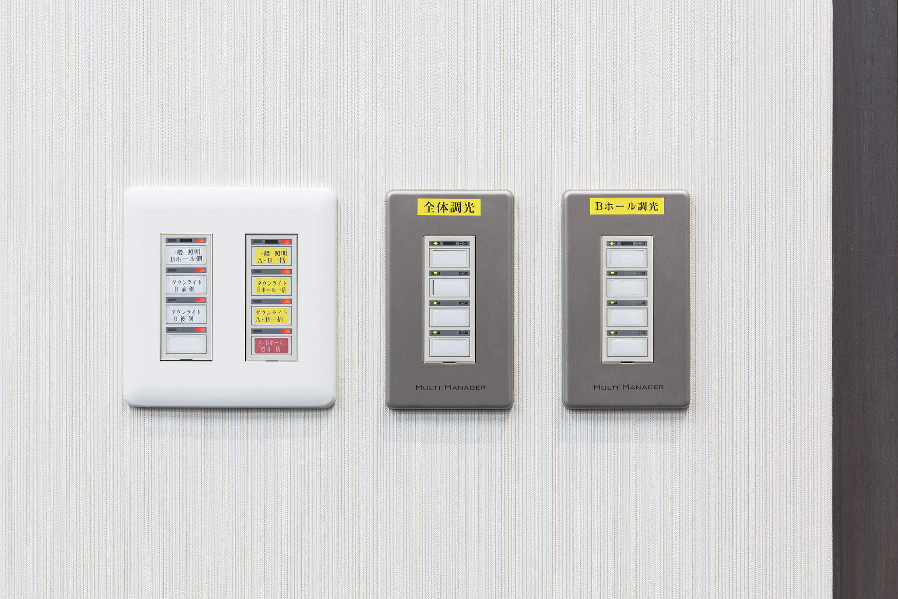 社内外の催し物、会合等の各種用途に利用できるよう個別の調光が容易に行える事が採用の決め手となりました。