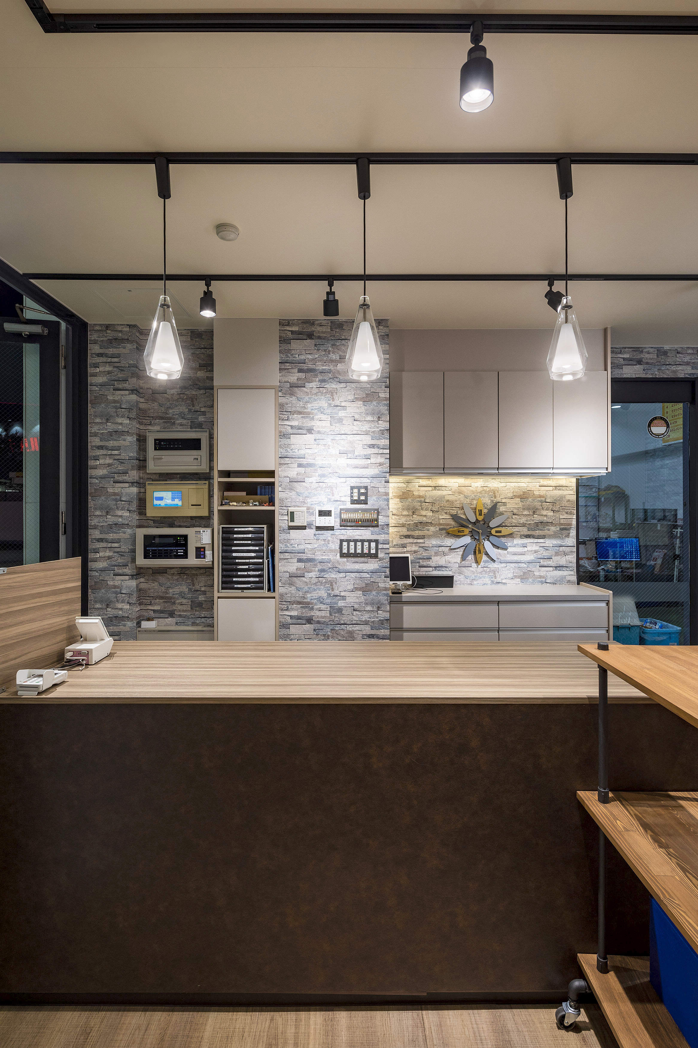 販売室内の天井には、ロの字型に配線ダクトを設置し、
