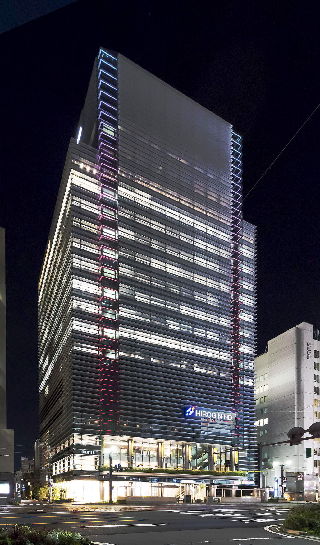 - 広島銀行など8社を傘下に置く「ひろぎんホールディングス」は、「銀行」「金融」という枠を超え、幅広いニーズや課題に対応できる〈地域総合サービスグループ〉として2020年10月に生まれ変わり、2021年5月に新本社ビルがグランドオープン。