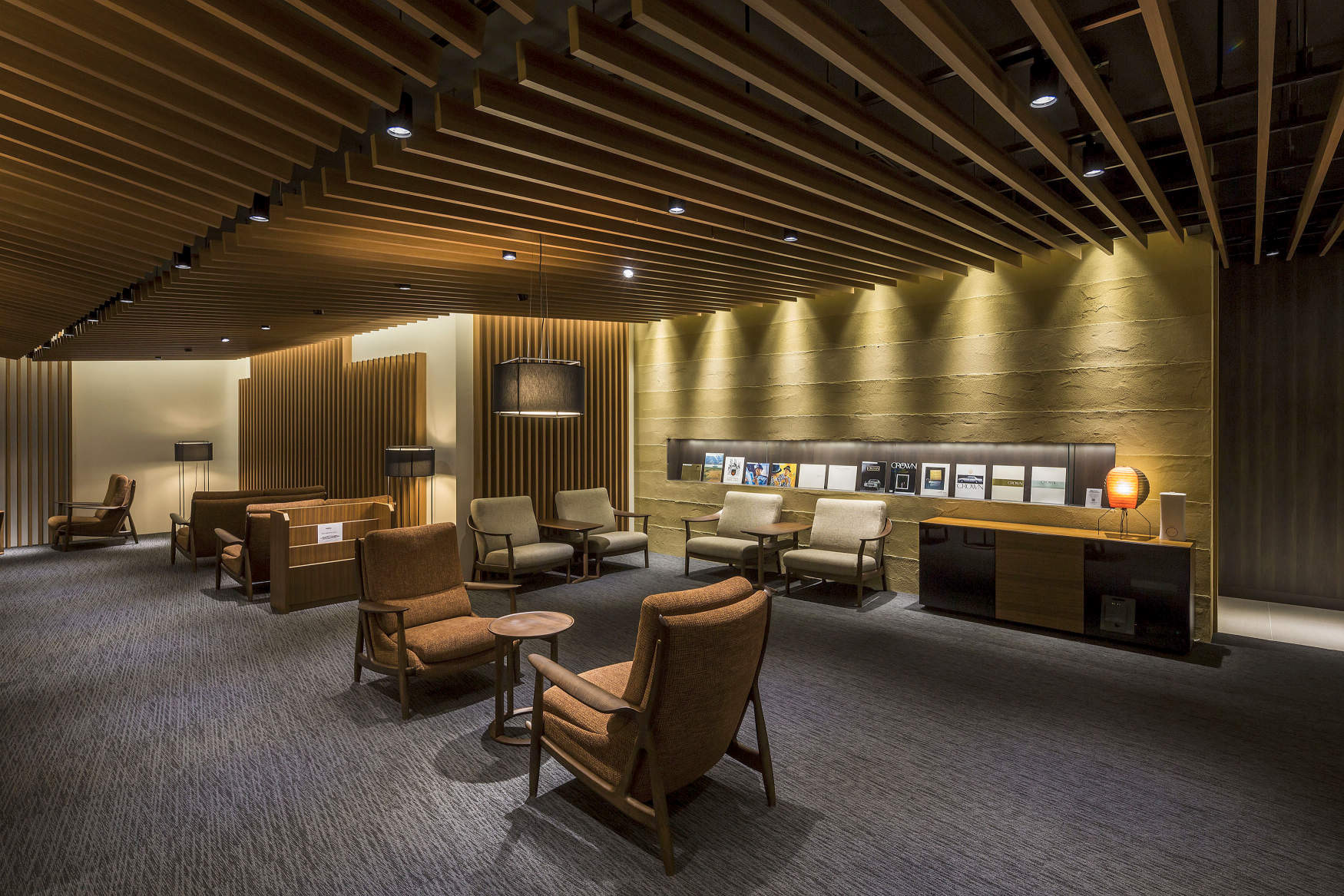 ショールームと違い、照度を落としてくつろげるような空間としています。