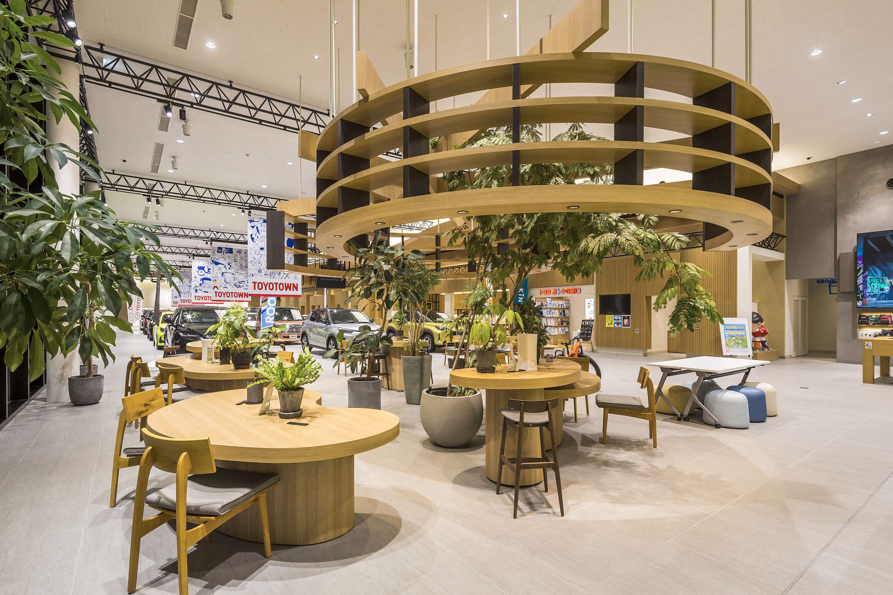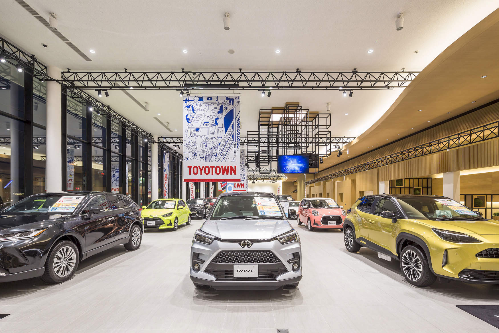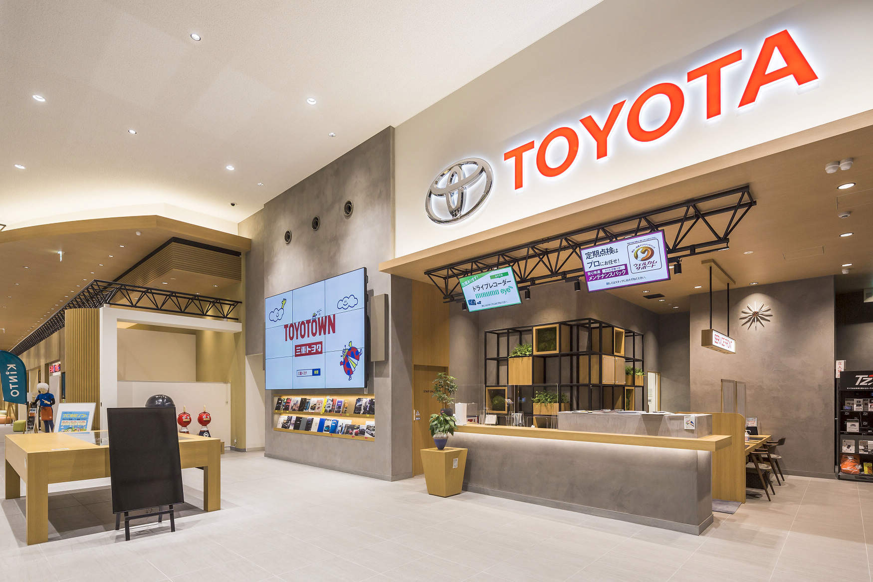 - 四日市インターチェンジから車で約10分。三重県初のトヨタのチャンネルを統合した大規模ショールームとなります。トヨタの様々な車種約20台が常時展示される迫力のある空間を生かした照明設計となっています。、