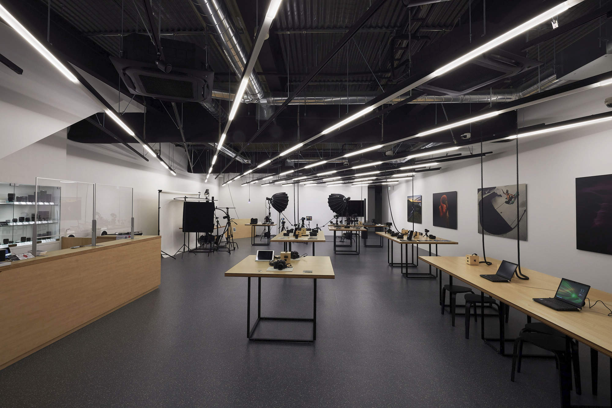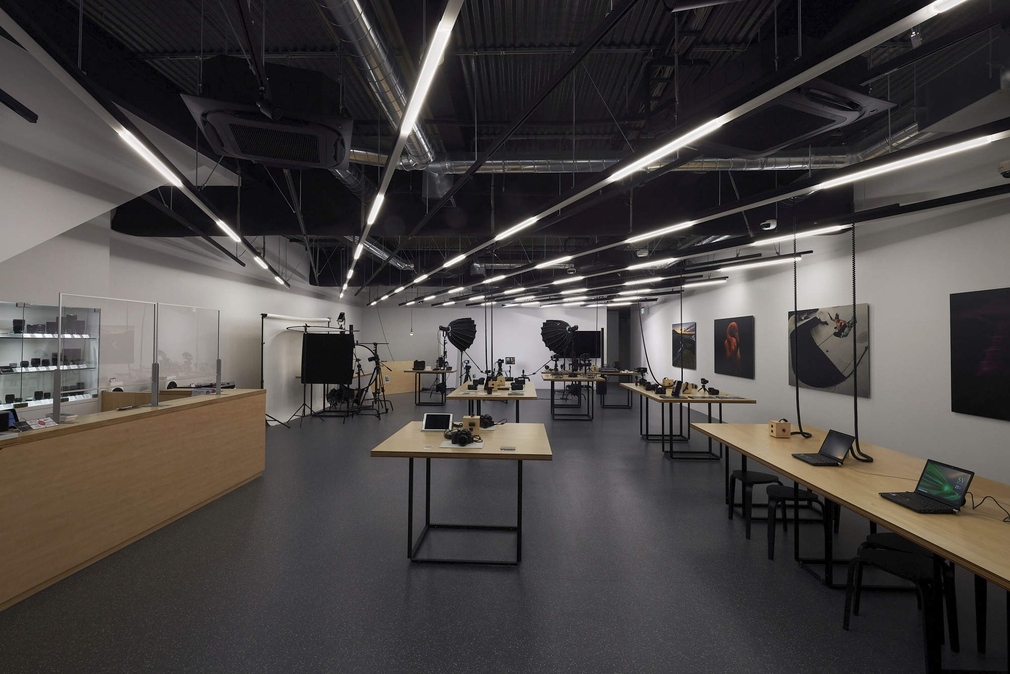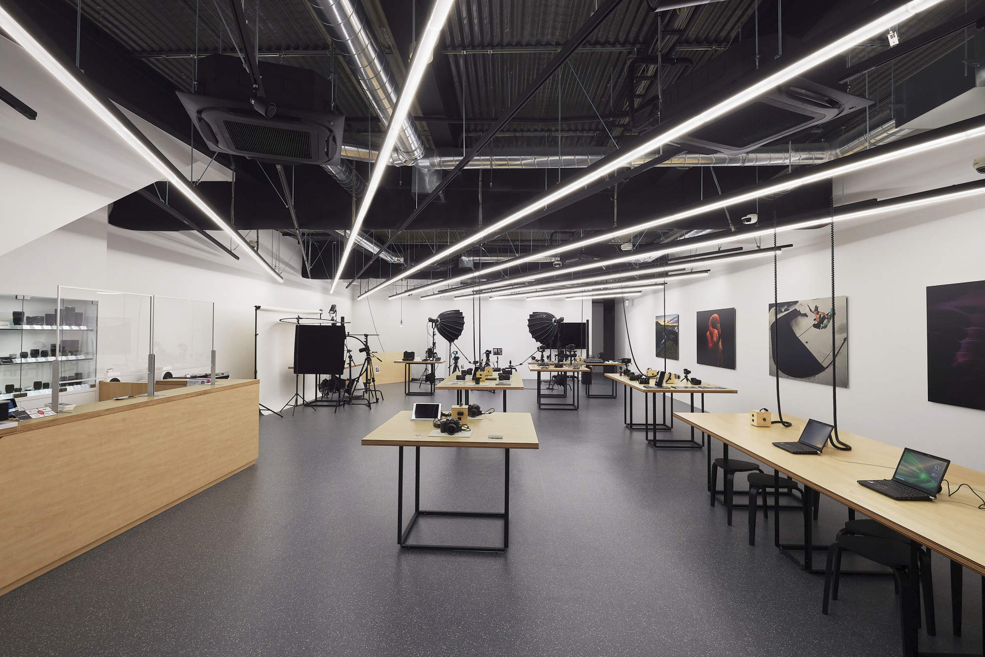 「LUMIX」の新たな発信拠点。1つの限られた空間に「ショールーム」「スタジオ」「ギャラリー」「ストア」「サポート」機能を満たすため、照明環境を容易に変えられるようLightManagerFxでシーン設定。ベース照明の回路にも工夫を施した