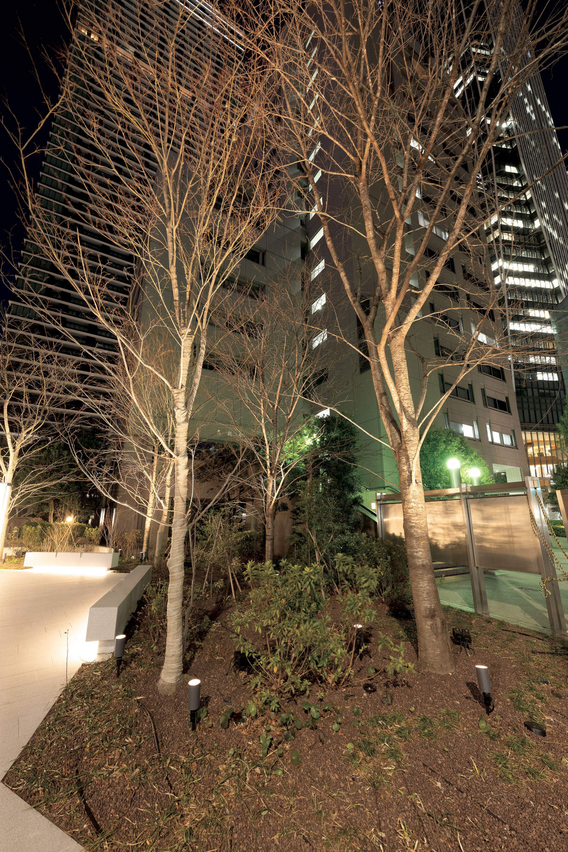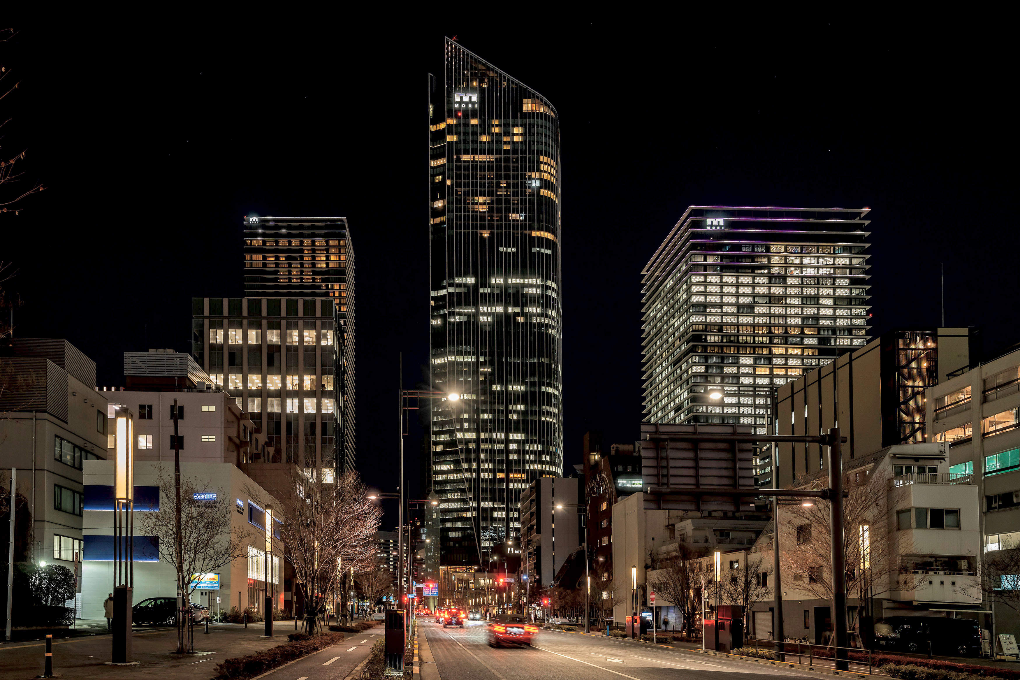 - 虎ノ門ヒルズ 森タワーの両脇に、オフィス・商業ビル(虎ノ門ヒルズ ビジネスタワー)と住居ビル(虎ノ門ヒルズ レジデンシャルタワー)とが一体のデザインにて竣工。月に見立てた虎ノ門ヒルズ 森タワーに雲がかかるような照明演出を行う。両ビルの演出は時刻で連動。季節ごとのイベント演出も両ビル一体で可能。