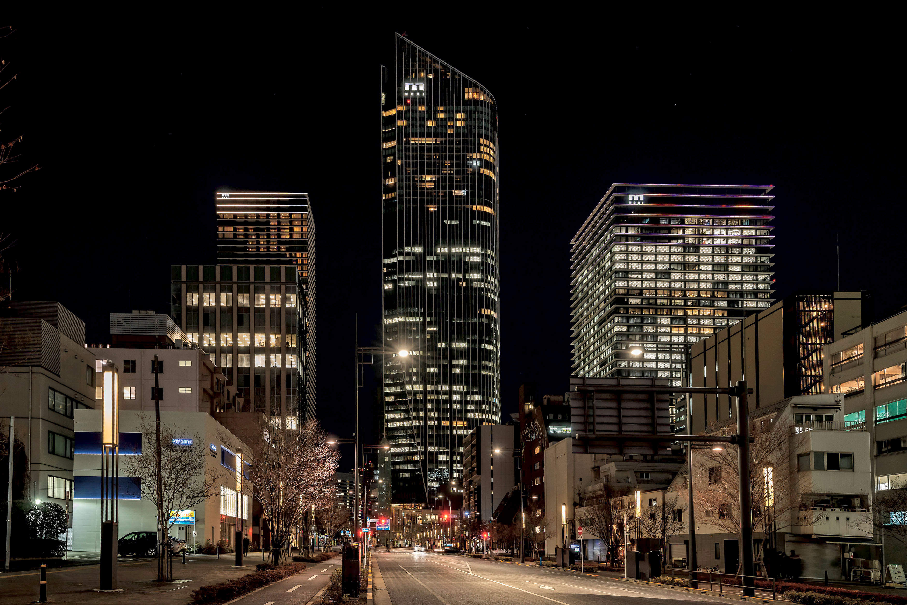 虎ノ門ヒルズ 森タワーの両脇に、オフィス・商業ビル(虎ノ門ヒルズ ビジネスタワー)と住居ビル(虎ノ門ヒルズ レジデンシャルタワー)とが一体のデザインにて竣工。月に見立てた虎ノ門ヒルズ 森タワーに雲がかかるような照明演出を行う。両ビルの演出は時刻で連動。季節ごとのイベント演出も両ビル一体で可能。