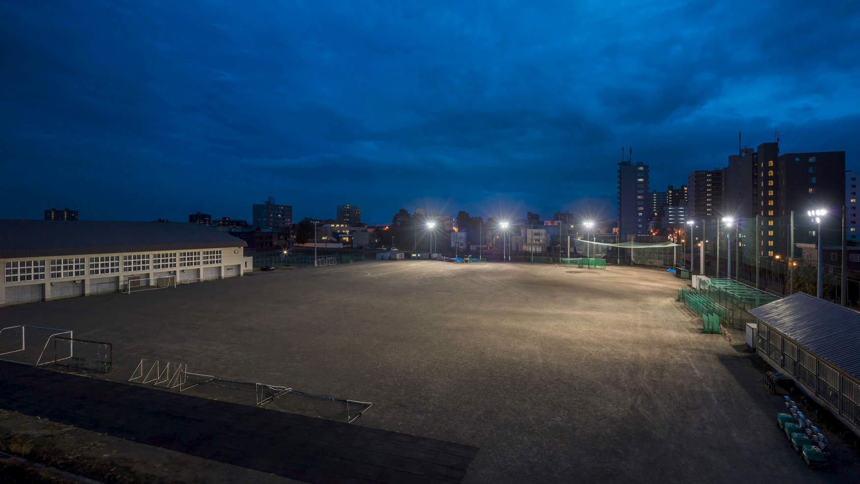 - 北海道地区初のアウルビーム納入事例で、北海道立高校のグラウンドとなります。周囲のマンションへの光漏れを削減するため、アウルビームが採用されました。