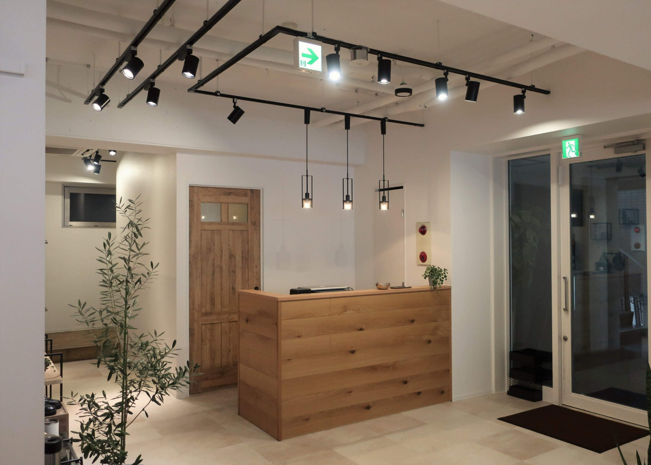 店内はダクトレールで計画され、「TOLSO BeAmFREE」の美光色。「ワイヤレススピーカー」「デザインペンダント」などを