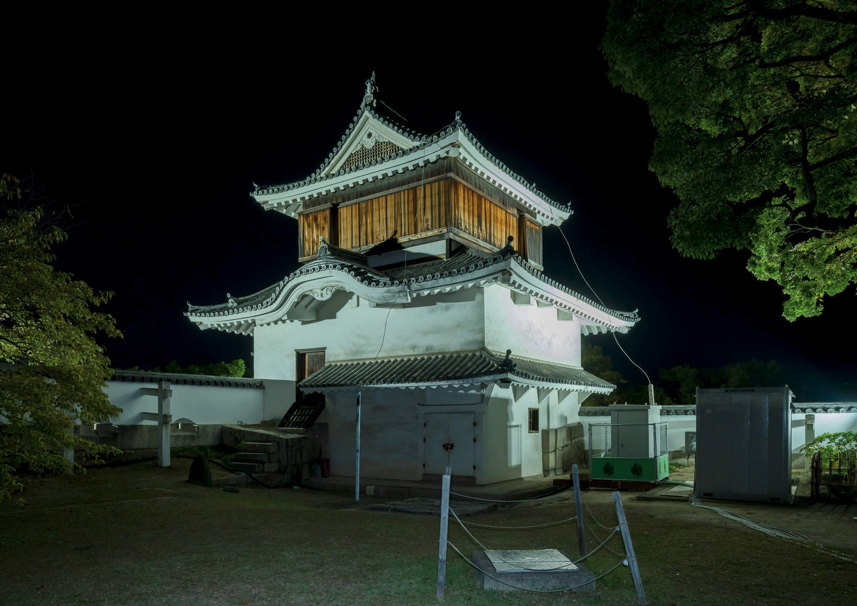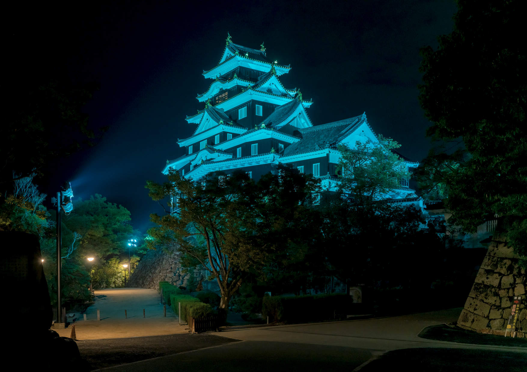 ライトアップの投光器もフルカラーLEDに更新し天守をカラーライトアップしています。