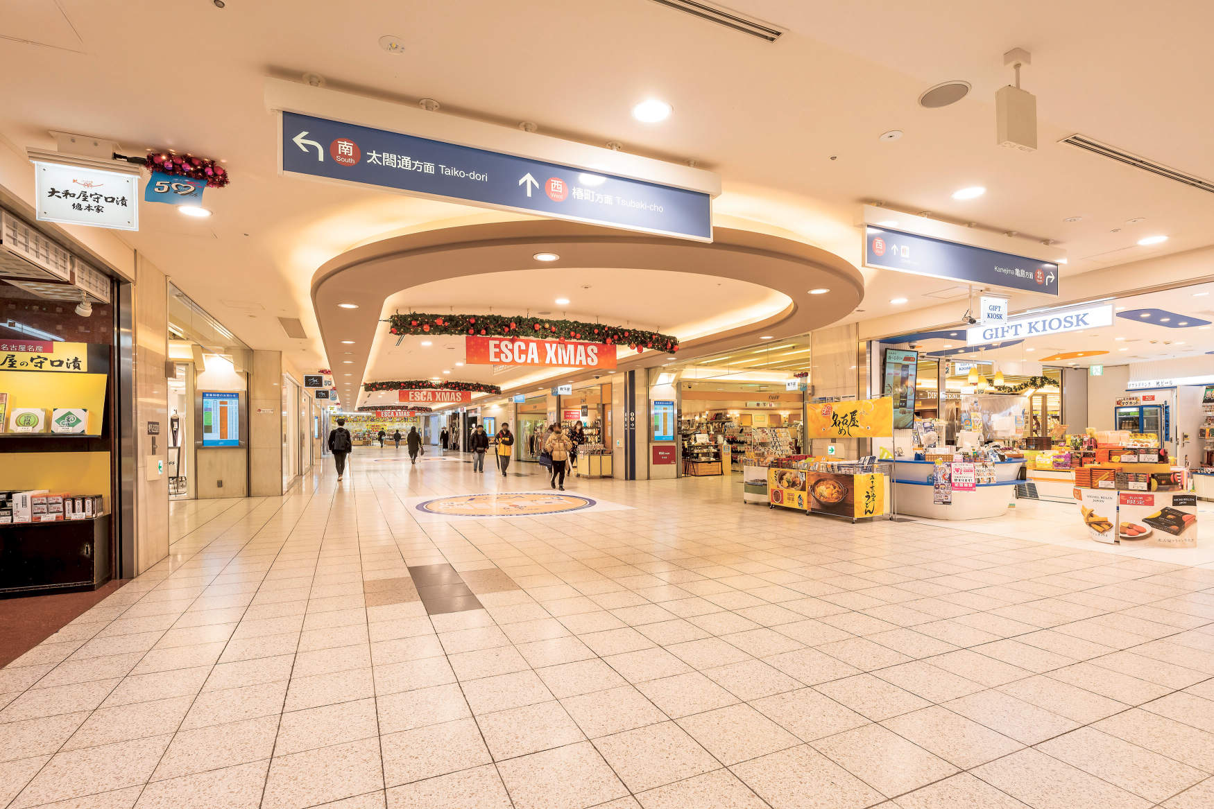 - エスカ地下街はJR名古屋新幹線口に直結する、名古屋めしやファッションなど約80店舗ある地下街です。