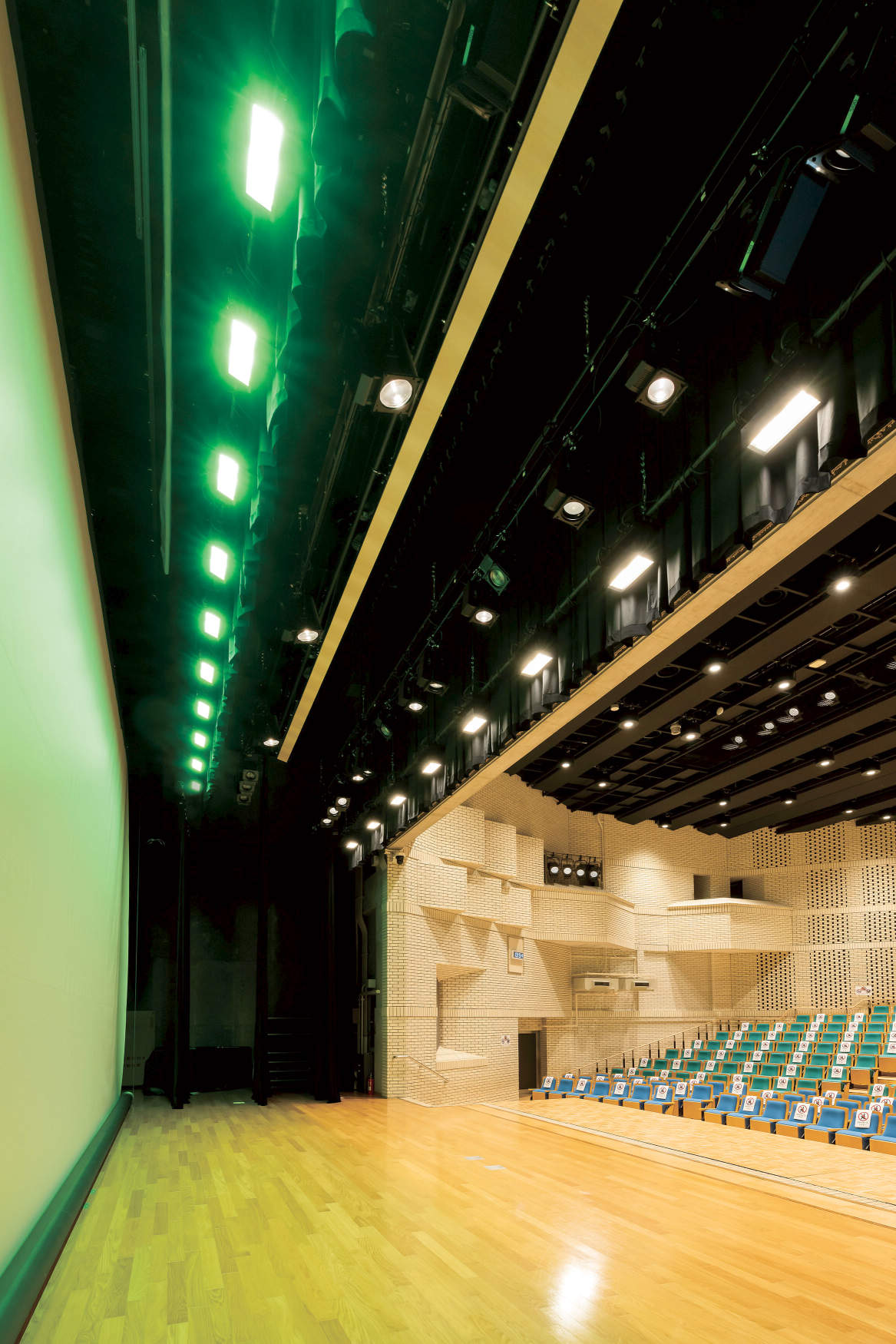 市民文化を支えるホールの舞台照明がLEDにリニューアル。舞台を美しく染める「LEDアッパー」などが採用されました。