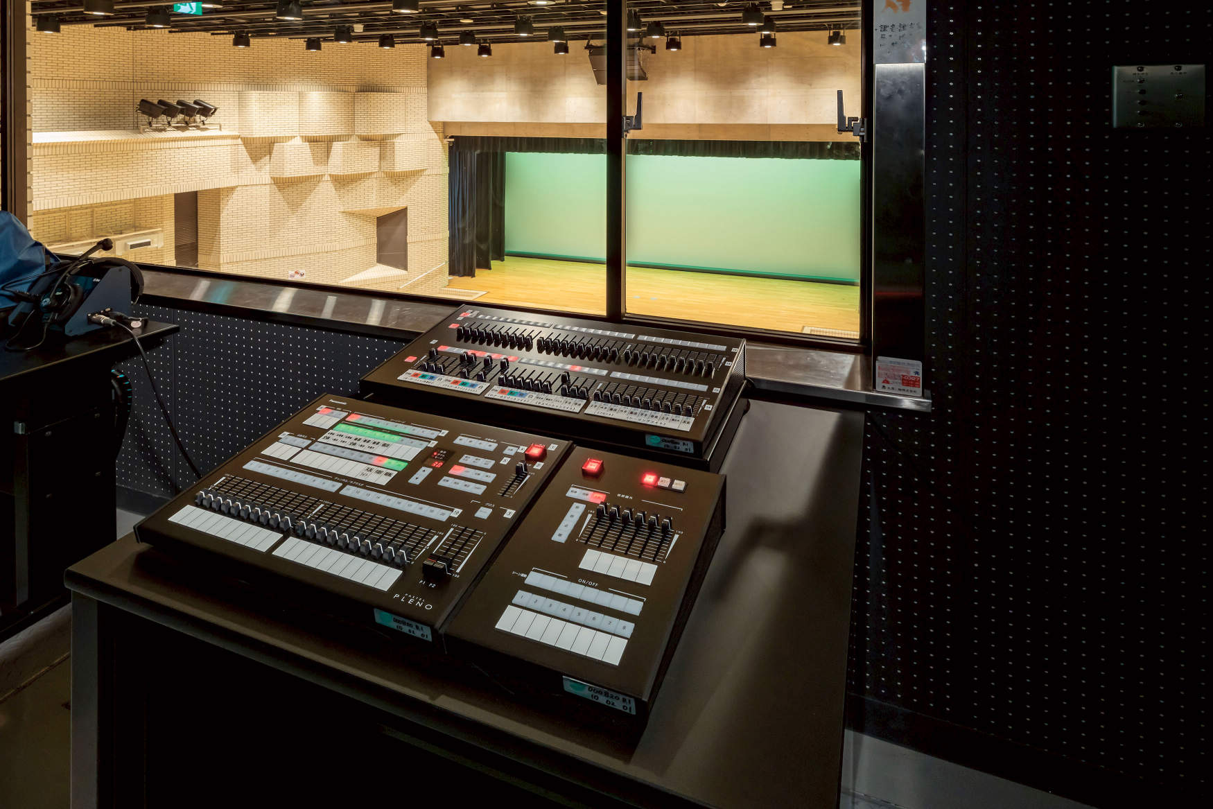 LEDスポットライトをはじめ、フラットなあかりで舞台を美しく染める「LEDアッパー」「LEDボーダー」が採用されています。客席には0~100%調光可能なLED客席ダウンライトで高い演出性を実現。埋込での取付はせず、現場に合わせた特注ボックスにて対応しています。