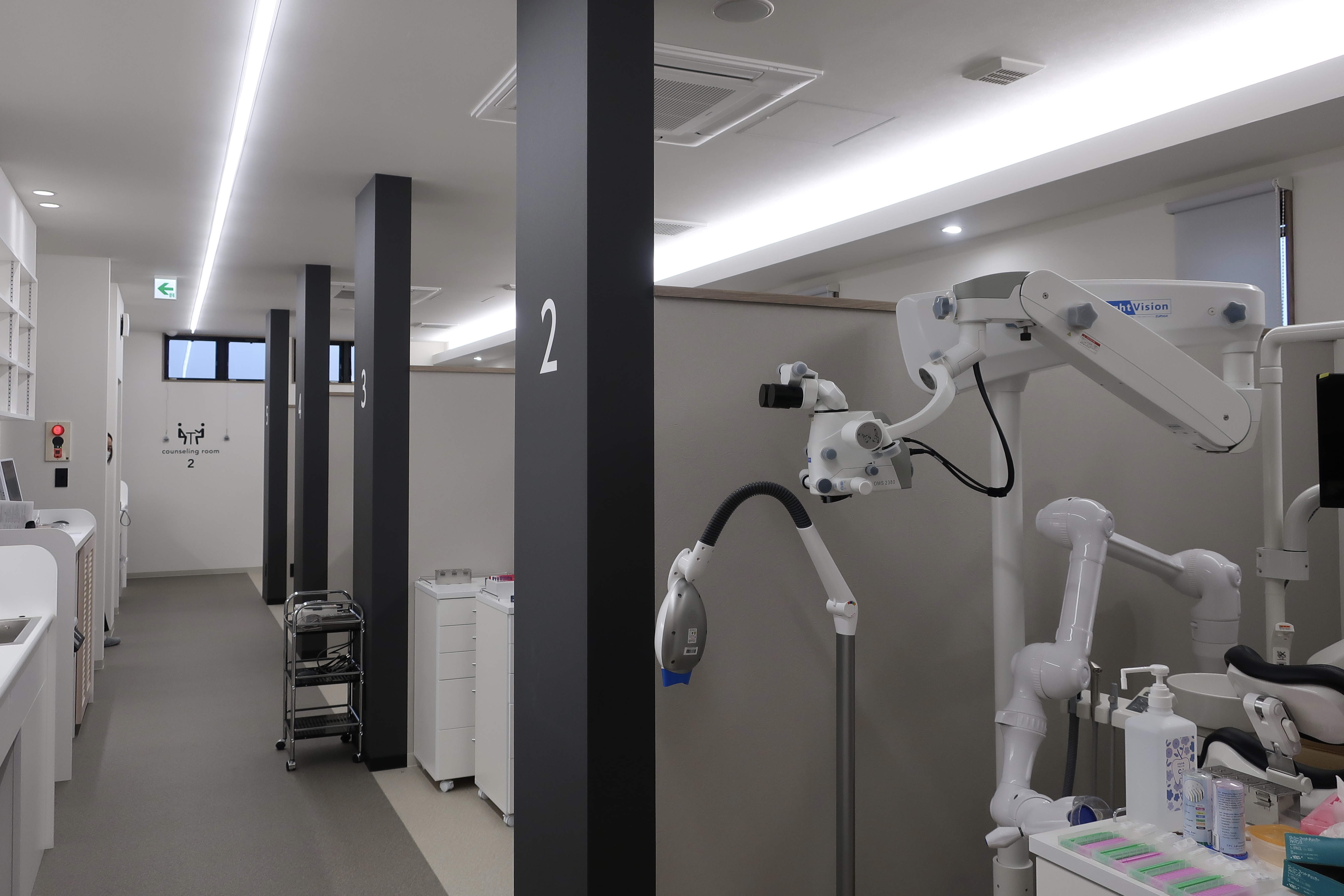 診察室は白を基調とした内装と作業効率を高める昼白色の光を組み合わせることで、きりっとした清潔感のあふれる空間に仕上がっています。