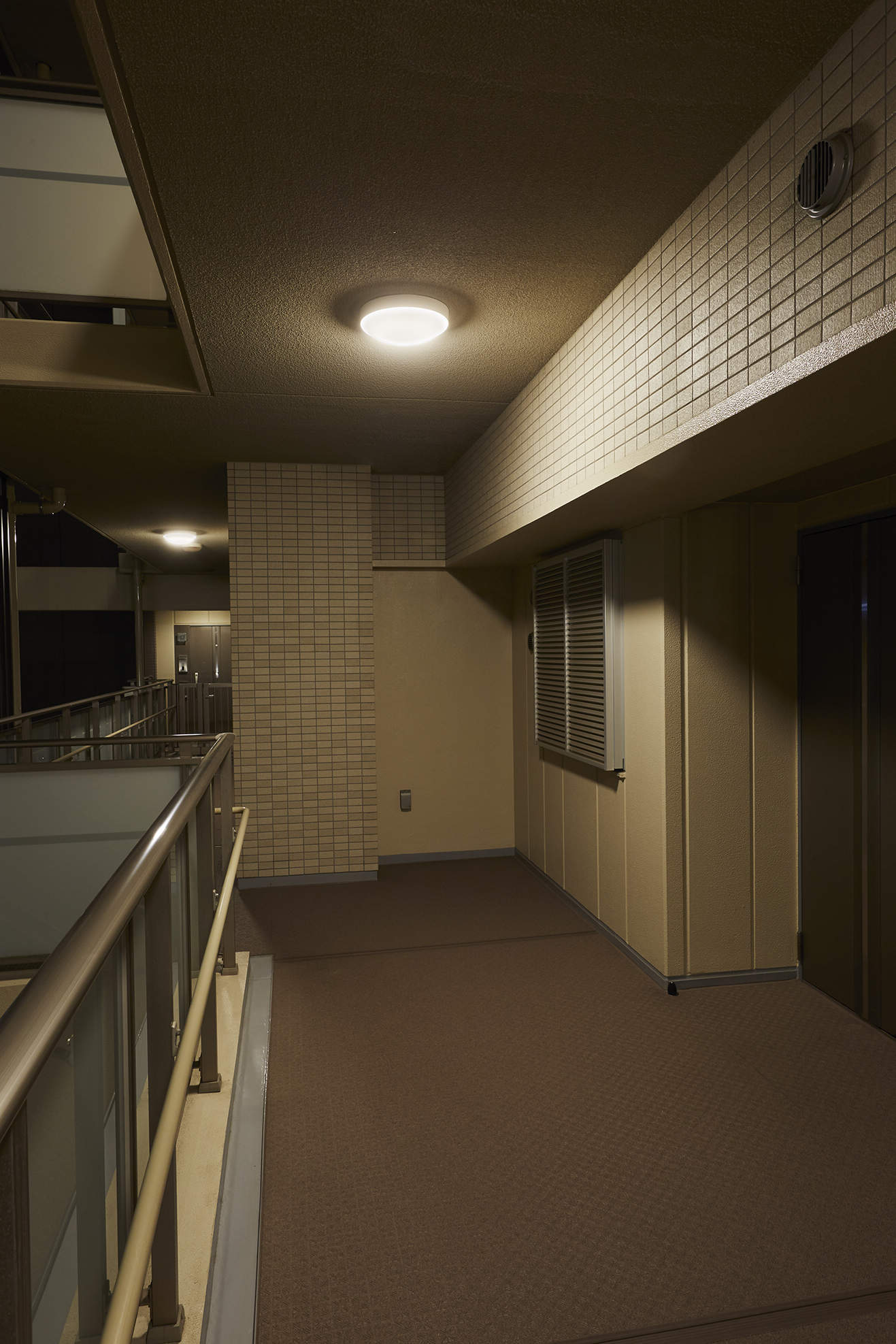 特にマンションの共用部の照明は灯数が多く、点灯時間が長いのでLEDがおすすめです。 - 採用商品