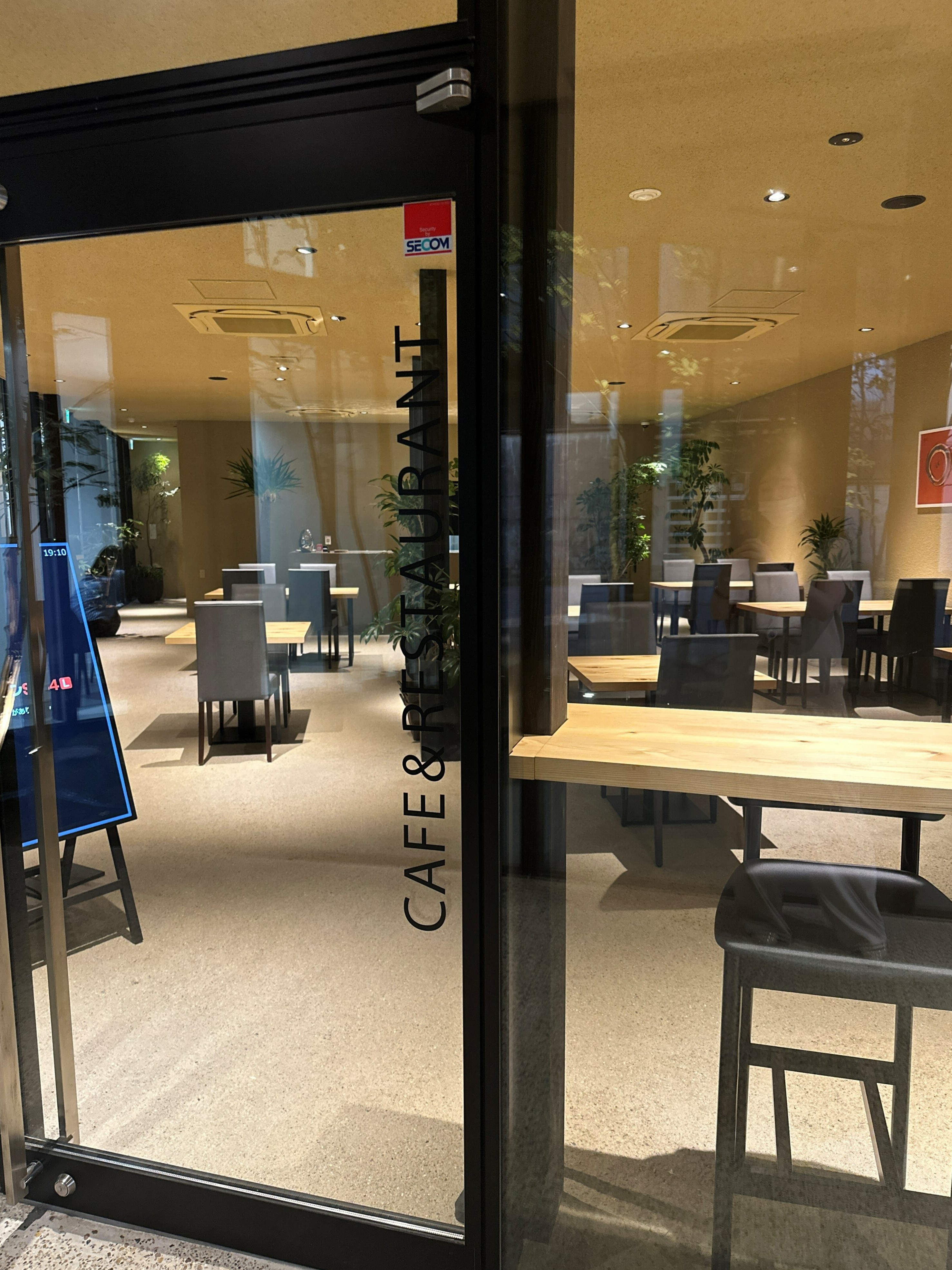 ガラス張りの店内は開放的で落ち着きのある雰囲気の空間です。