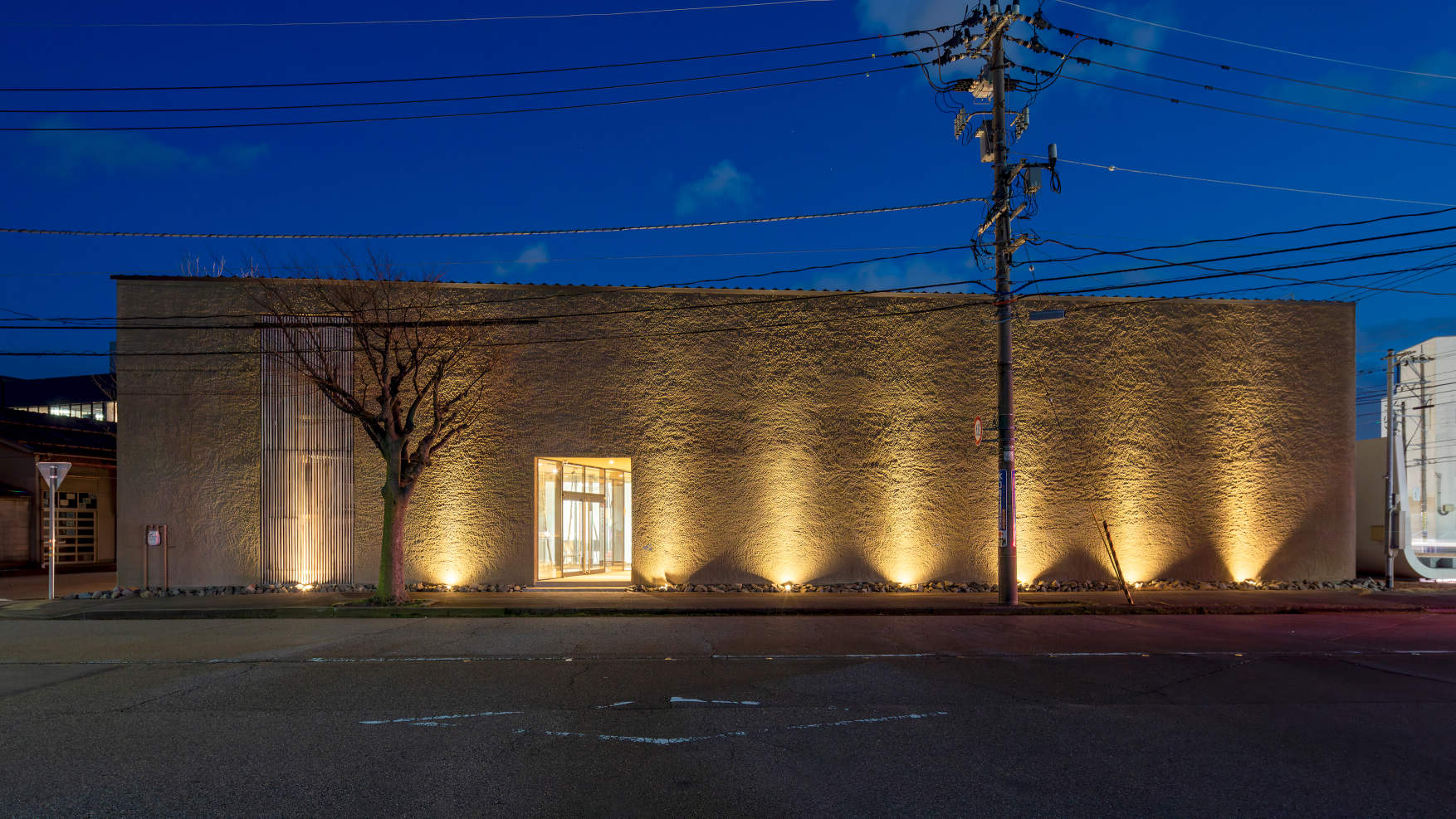 道路に面する外壁にはほぼ開口部がなく入口がひっそりとあります。