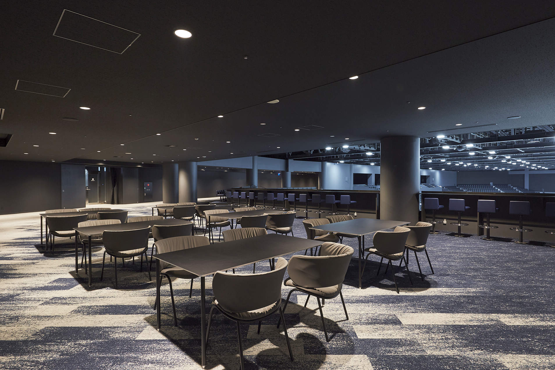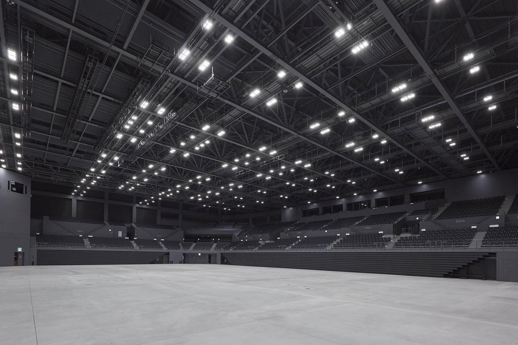 約5千人が観戦できるメインアリーナには、21種類の競技に対応した、国際大会の設計基準を満たすLED高天井用照明器具(Ra83)が採用されています。また、スポーツだけでなくコンサートやイベントにも利用できるよう、座席を一部収納して広く使用したり、舞台演出照明設備を整備するなど、多目的利用に対応しています。