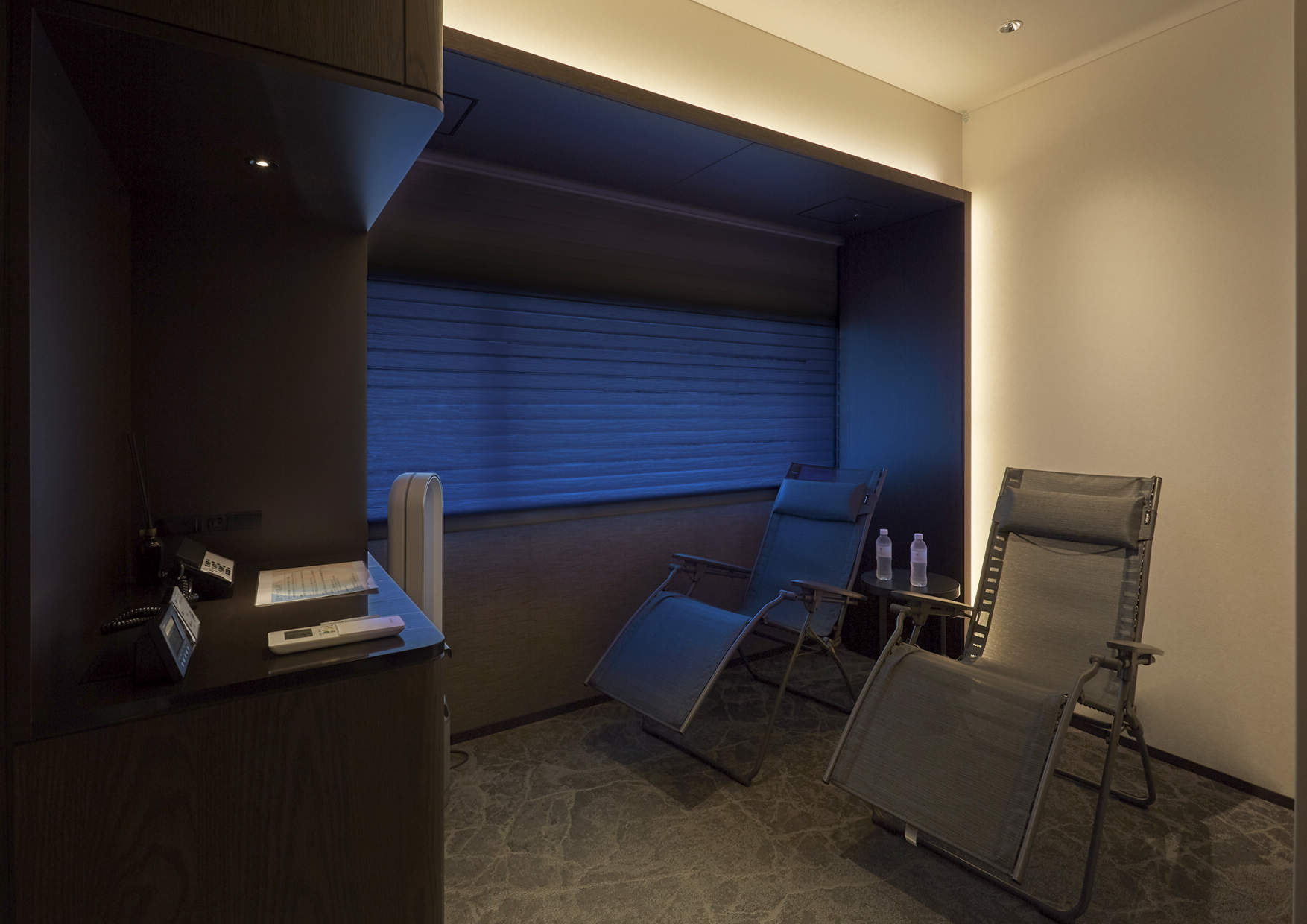 個室サウナの休憩エリア