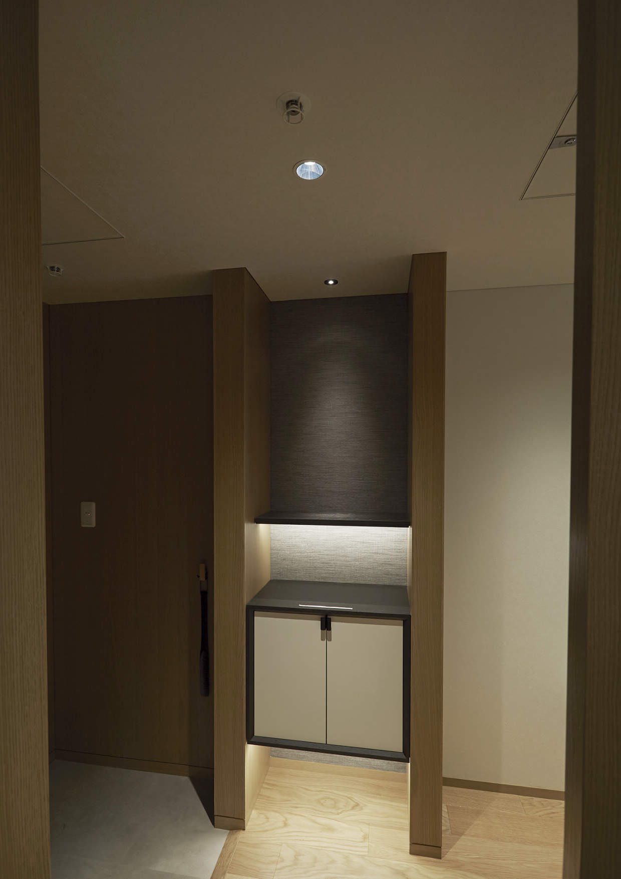 ダウンライトと間接照明は壁の「信号線式ライコン」で回路毎に調光調整、ON/OFF切替えができます