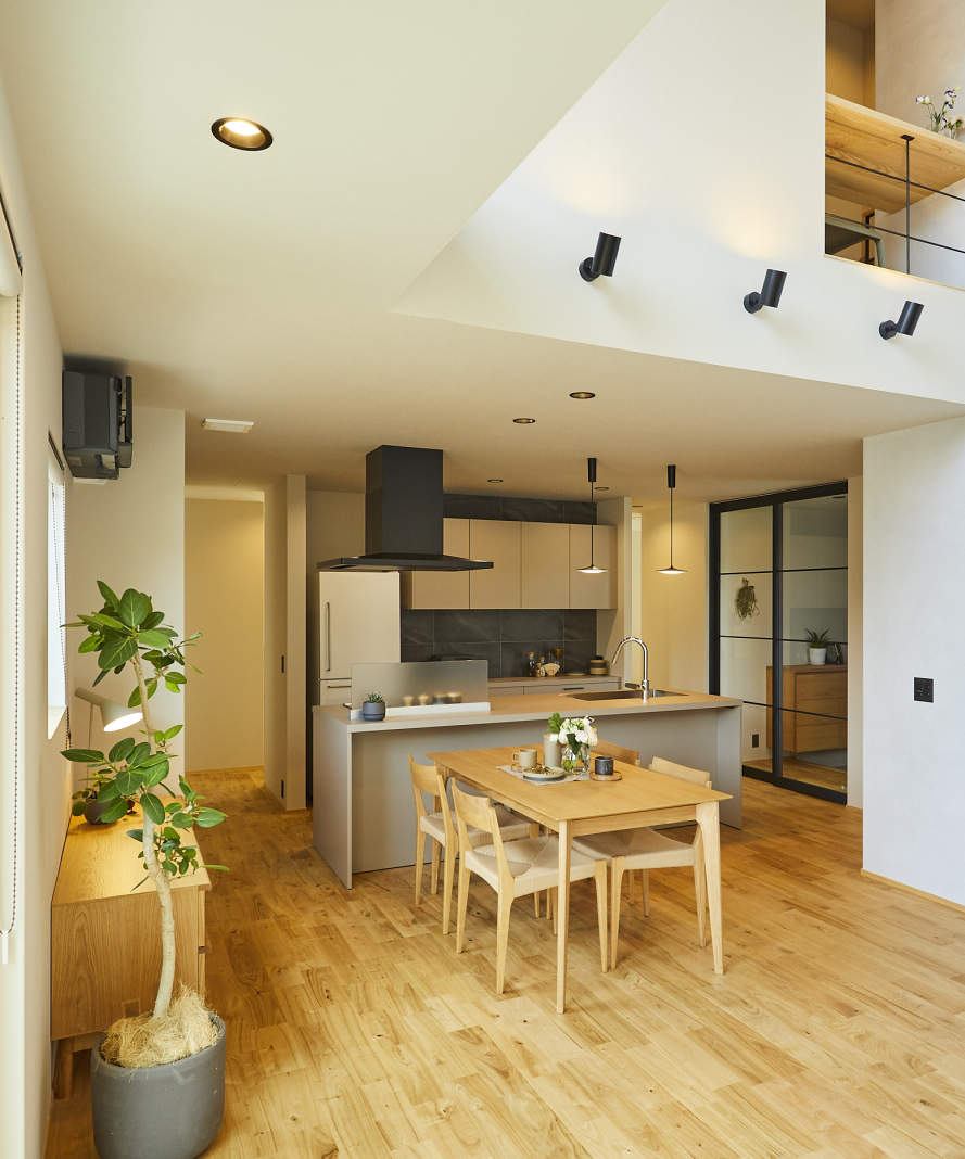 今回のモデルハウスでは、やさしい明るさが中心となる北欧テイストからさらに進化させ、トーンを少し落として大人っぽい和の要素を加えた「ジャパンディ」スタイルに挑戦した。