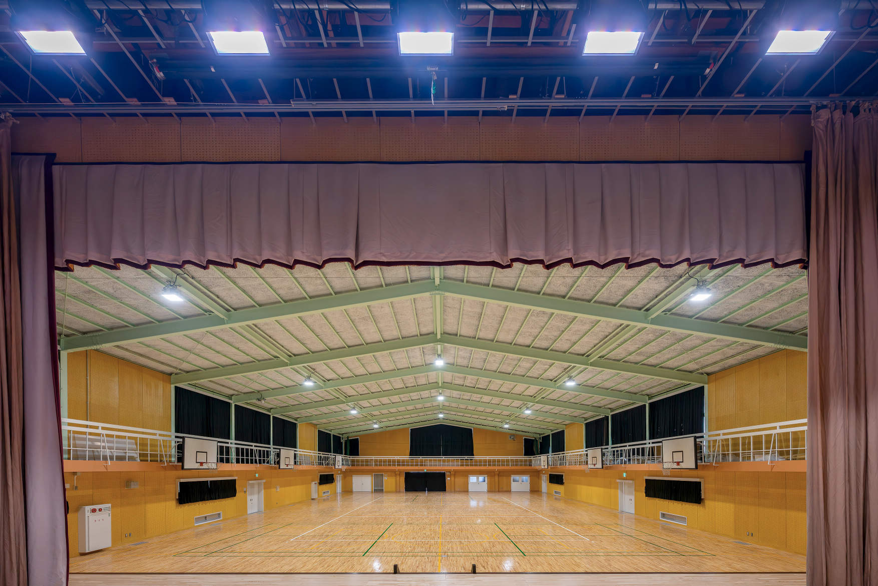 納入事例集 (照明器具) 物件詳細: 倉敷市立第三福田小学校体育館カラーボーダー照明