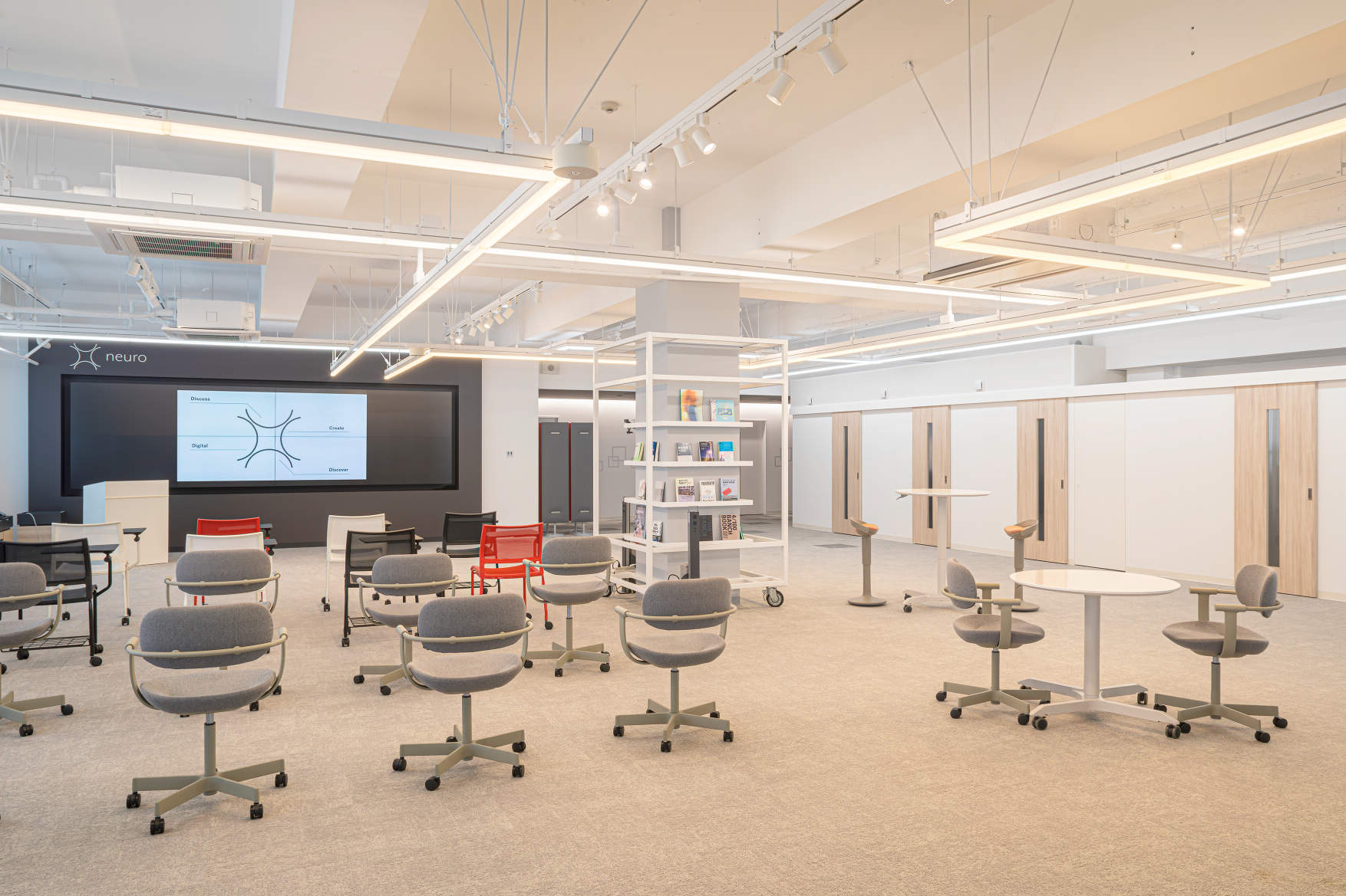 neuroサロンは、デジタルを起点に「部門や距離の垣根を超えた会話」と「世の中の様々な情報の発見」を重ねて新たな顧客価値を創造できる場所です。セミナー・イベント・打合せ等、多目的に利用します。