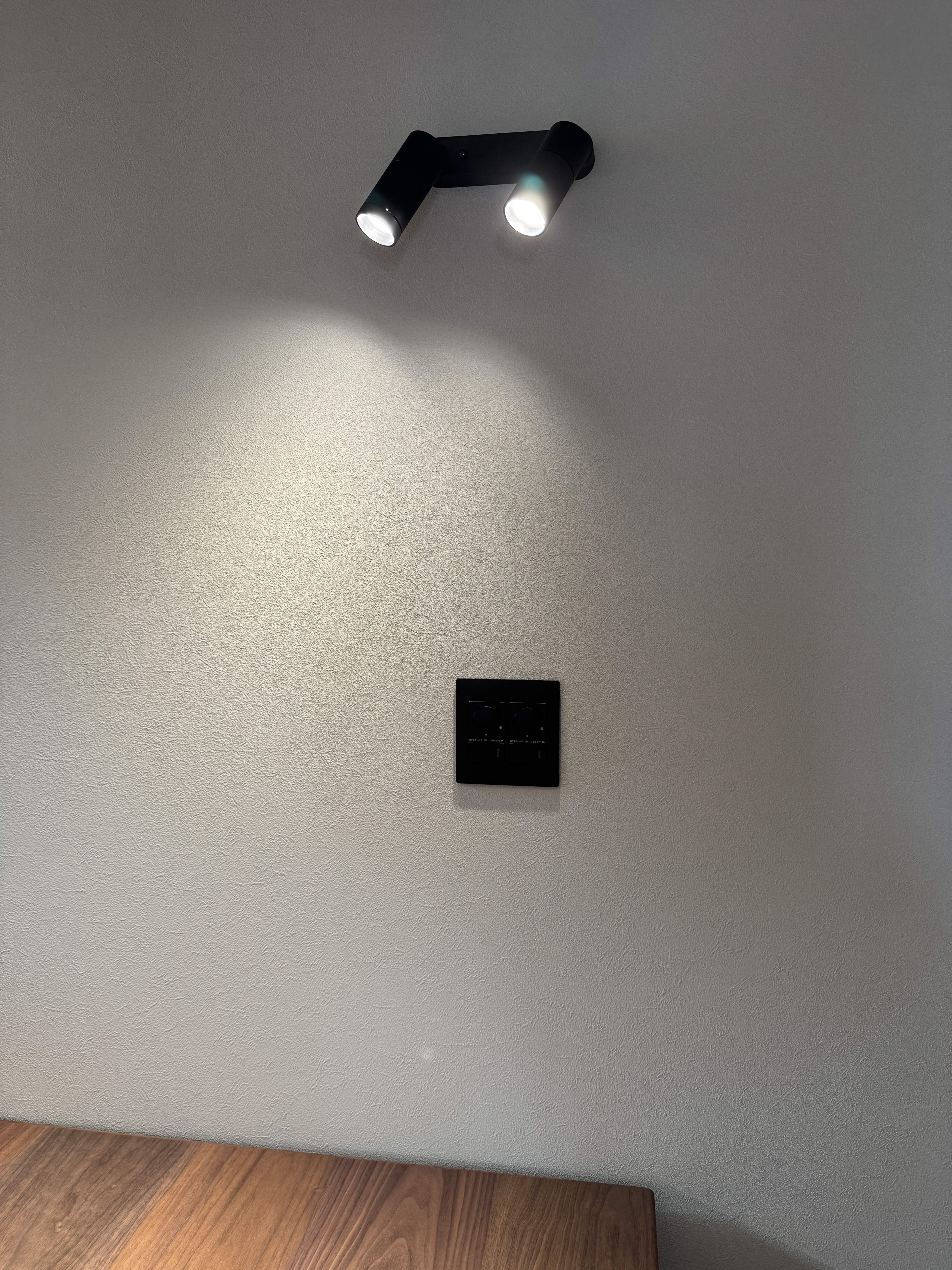 TVボード下は、スリムライン照明を仕込み、低い位置のあかりが