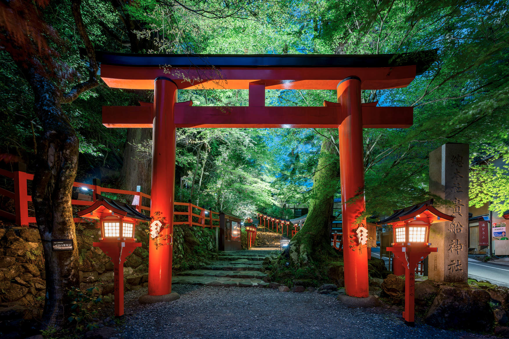 京都・貴船山と鞍馬山に挟まれた山あいに鎮座する貴船神社は、千年以上の歴史を誇る由緒ある神社です。本殿へと続く石段の参道は、四季折々の自然に包まれ、訪れる人々を神聖な空間へと導いています。