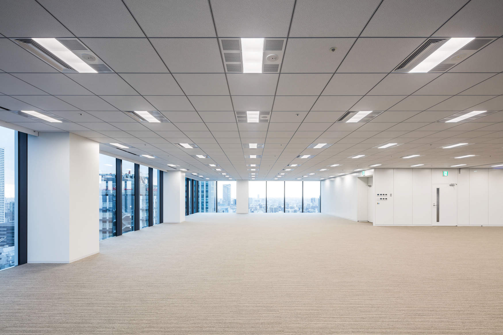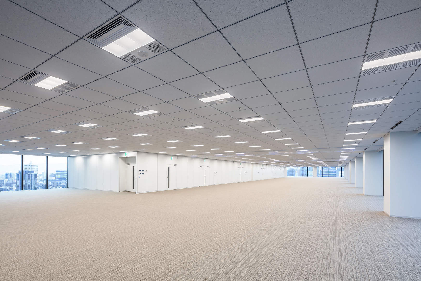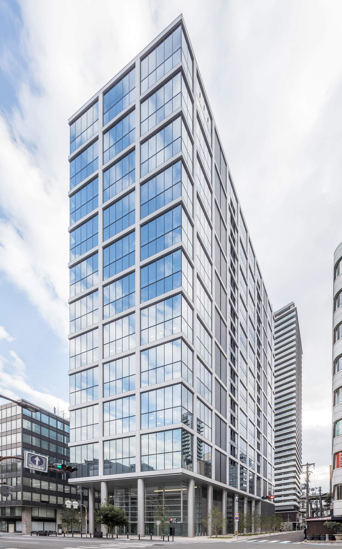 大阪市中央区、御堂筋近傍に建つテナントオフィスビル。全面開口による眺望と自然採光により心身共に健康に働くことができる基準階オフィス、ポストコロナにおいても活用できる風通しのよい屋上ワークプレイス等、ワーカーに快適な環境が整備された都心超高層型のウェルネスオフィス。