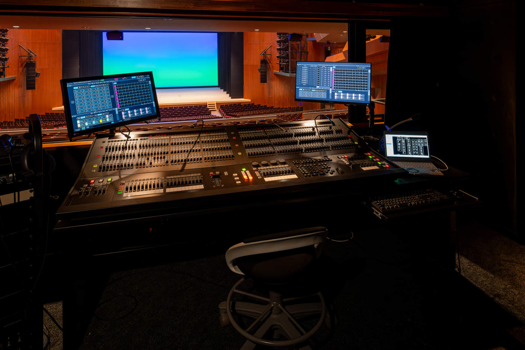 LED調光制御盤「MILBAN」は客席後方の調整スペースに収納。