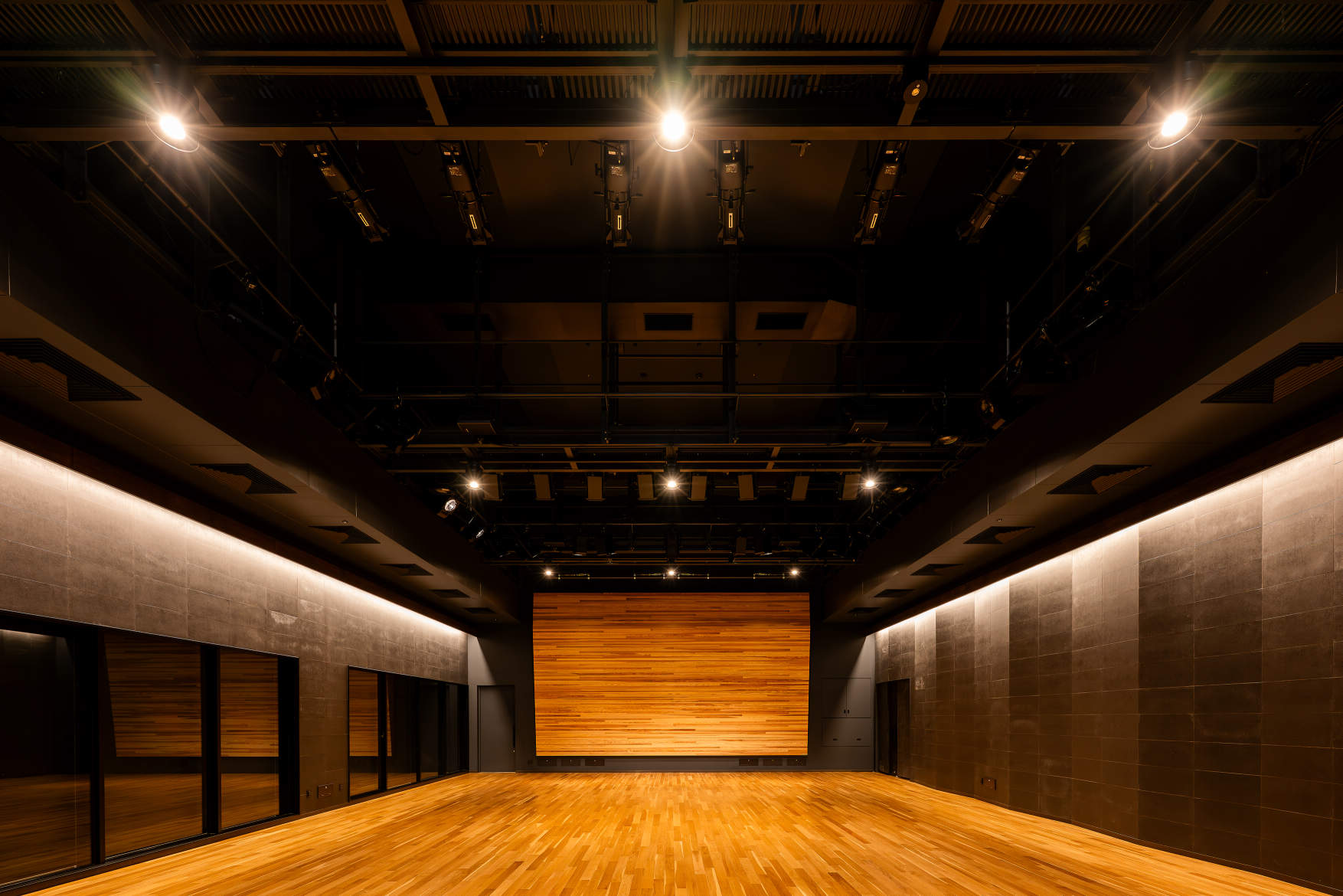 平土間仕様の多目的空間で、少人数での文化活動の発表やコンサート、市民向けワークショップに加え、レセプションにも柔軟に対応。