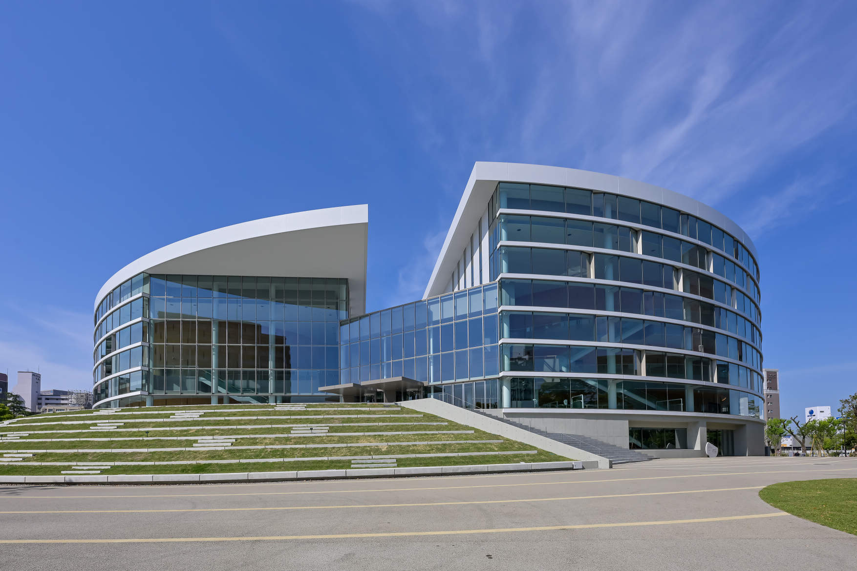 - 60年にわたり市民に親しまれてきた福岡市民会館の後継施設として、福岡市の中心・天神に誕生した「福岡市民ホール」。須崎公園の再整備と一体となり、まちに開かれた次世代の文化振興拠点として、2025年3月に開館しました。