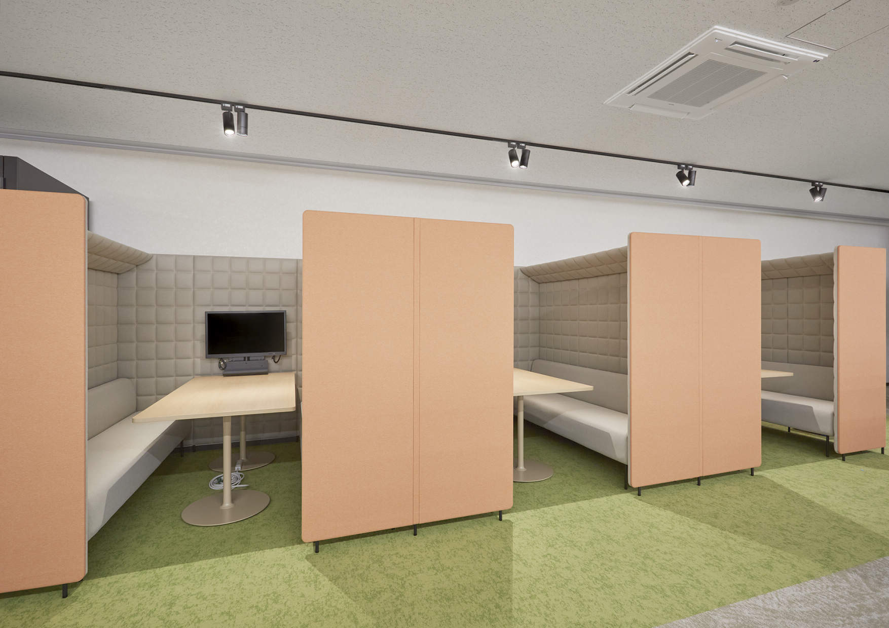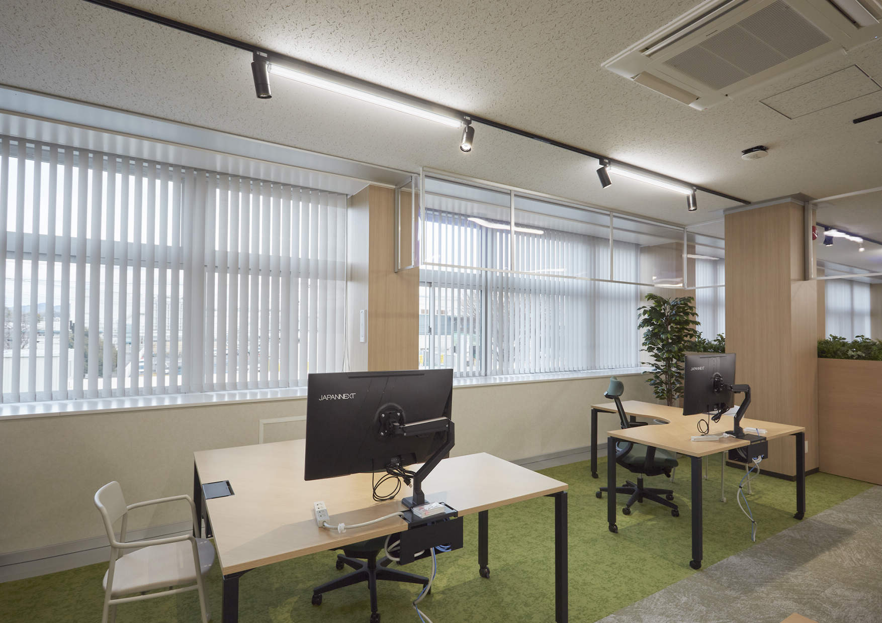 打合せスペースはTOLSO+オフィス配光スポットライトを2台設置。