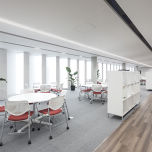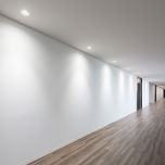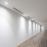九十九折壁面内側の窓際に造作した建築スリット内にスリムライン照明(ダイナミック演出用器具)を縦に連続配置し、43箇所続く各壁面を間接光により照射。間接光の連続した光でボリューム感を演出し、建物のスケール感を強調しています。