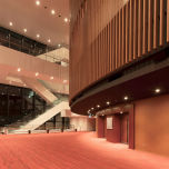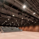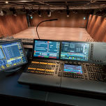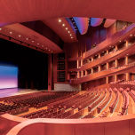 天井上部に設置するLEDフルカラー照明(RGBAW色、50W、ビーム角23°,60°×10°)により開演前から開演時の天井に雲のように浮かぶ反射板を一瞬消え行く残照のように淡い赤から紫へ、そして青色帯びた光に変わり、その余韻を残して消えていく演出を行うことでこれから始まるパフォーマンスへの期待感を一層膨らませて行きます。