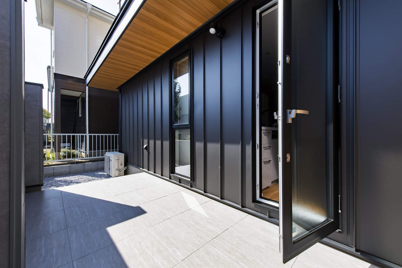 デッキ側にはフラットランプの屋外用スポットを設置し、明るさの確保に加え、防犯にも寄与します。