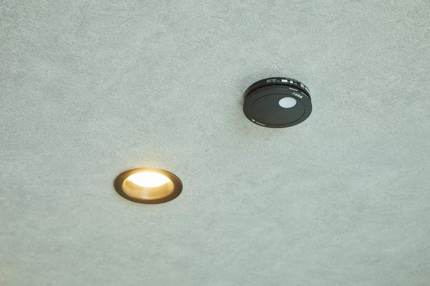 天井にダウンライトとワイヤレス連動型住警器を設置