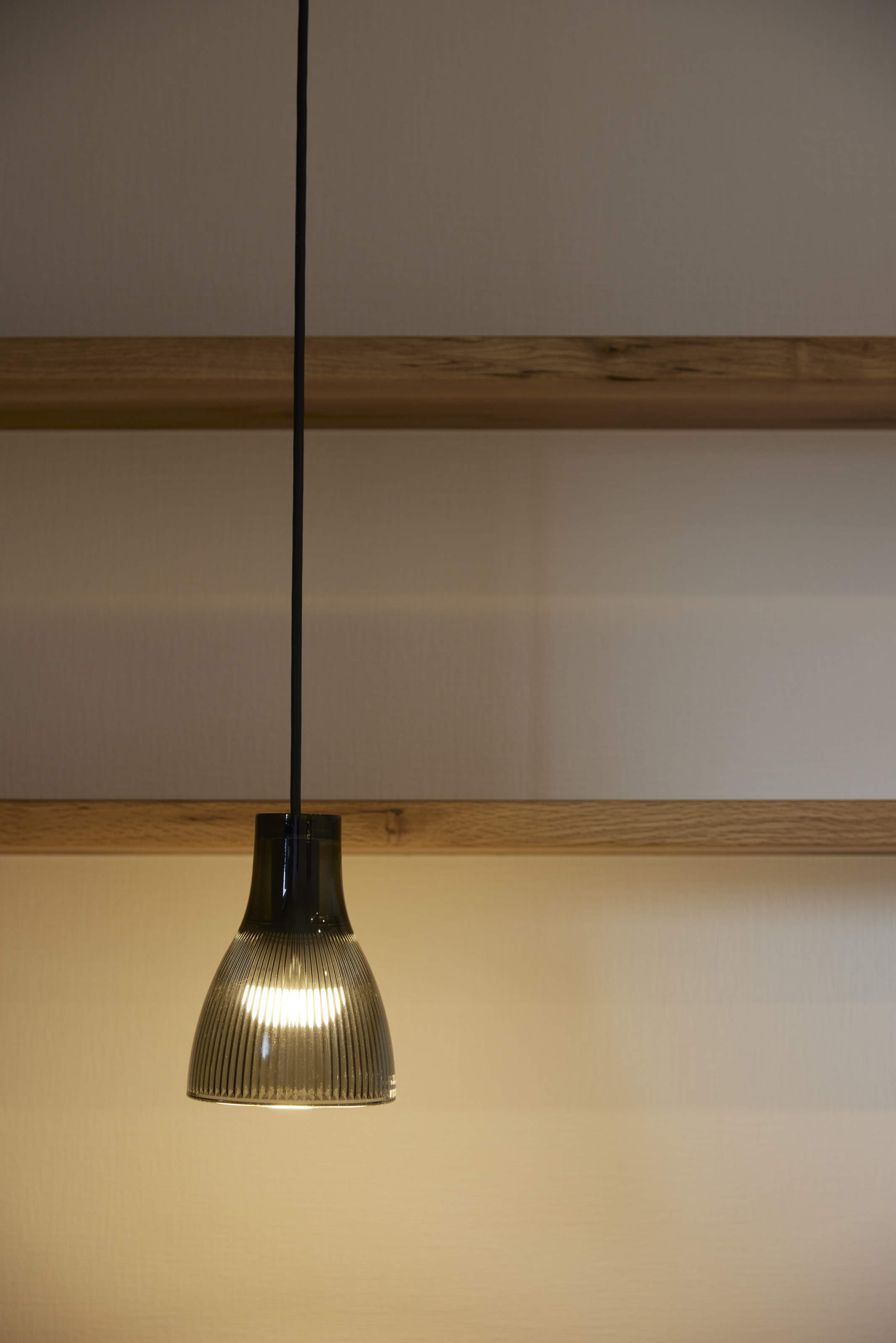 和室にはシーリングライトを使うことが多いが、あえてここにもブラック色のペンダントライトを採用。