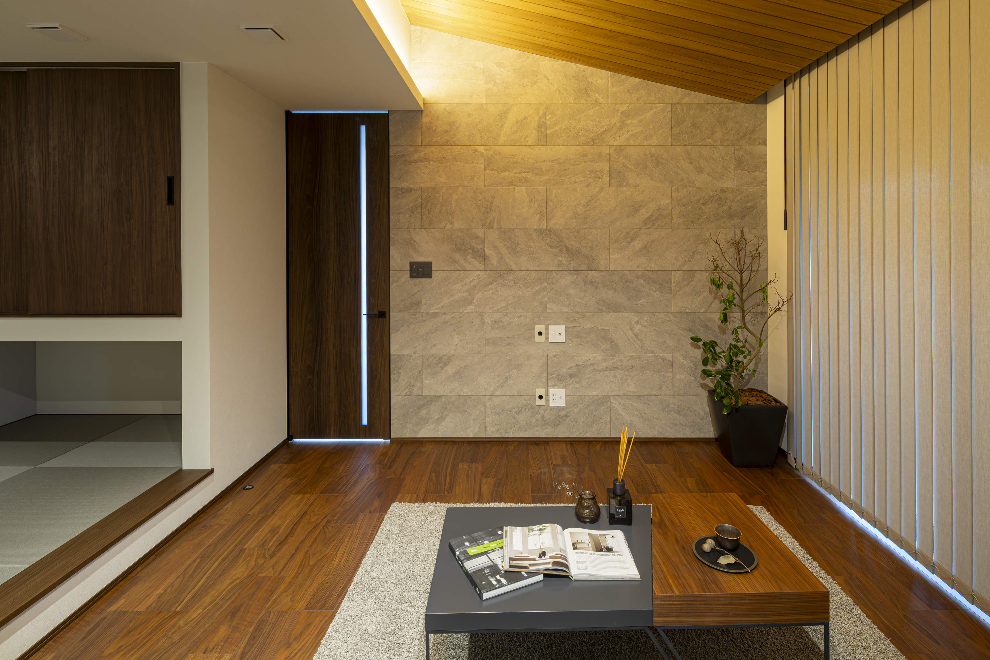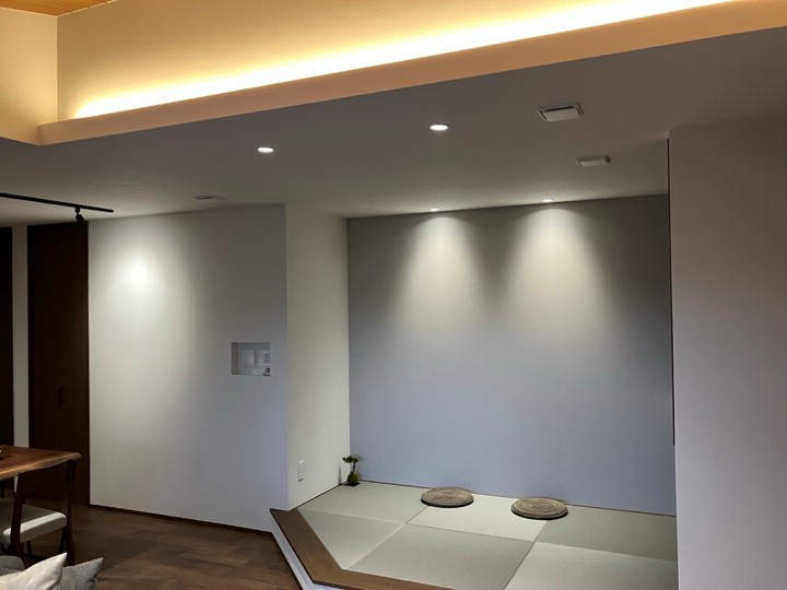 また、畳コーナーの壁面にダウンライトを配置することで、奥行感を演出しています。